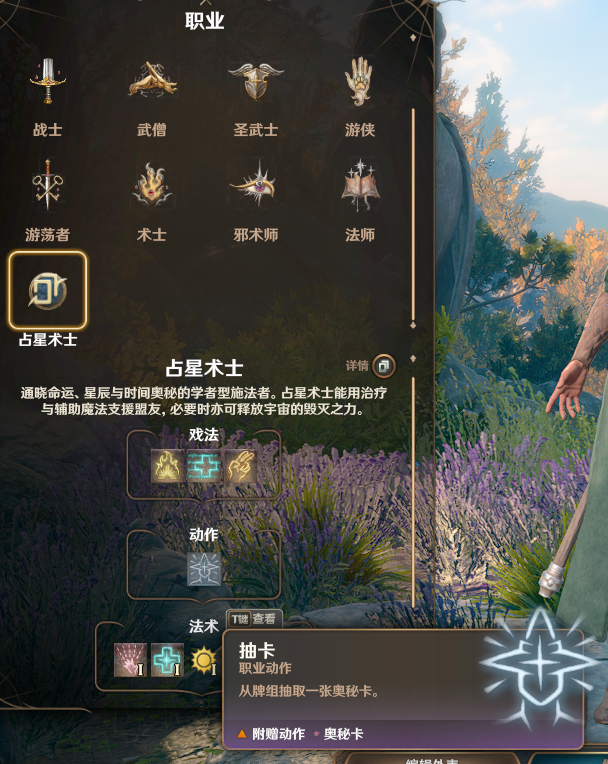 《最终幻想14》中的占星术士职业以及白昼占星术士和黑夜占星术士子职的中文翻译。