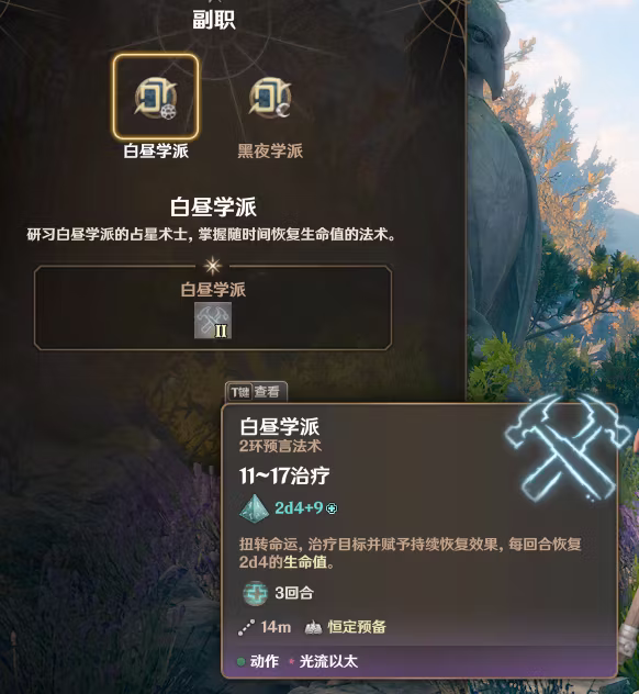 施法主要属性是智力。子职的少数技能需要消耗光流以太才能施放。子职为作者原创,白昼占星术士倾向于持续恢复,黑夜占星术士则更倾向于为盟友提供临时生命值的增益。另外作者还为这个职业制作了不少的独特特效。