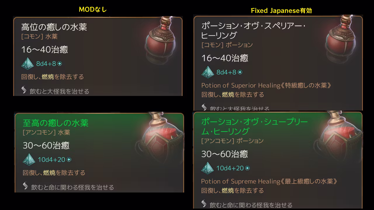 由于日文说明经常无法更新,请参考Nexus Mods上的修正内容。 [https://www.nexusmods.com/baldursgate3/articles/1060]