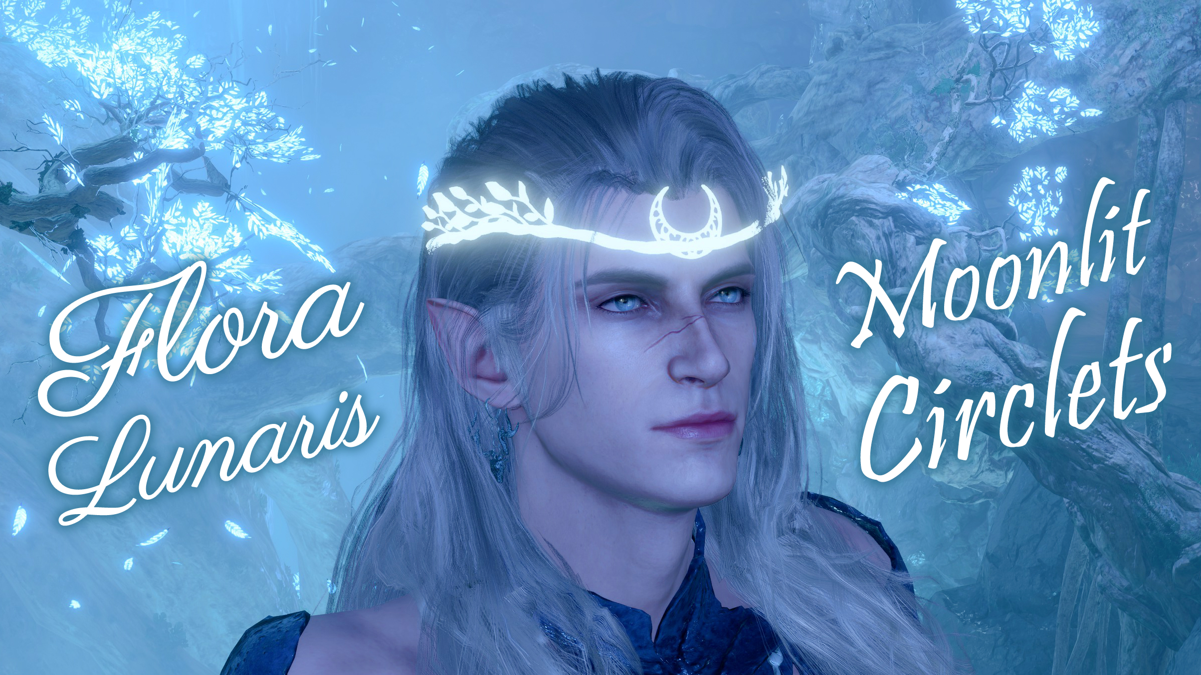 我的第三个头饰模组!对于月亮部分,我亲自建模设计,但对于叶子和花朵,我重复使用了一些游戏内的资产(耳语花瓣、夹竹桃花),并进行了一定的修改。至于头环本身,我也进行了建模,但它来自我之前的头环模组。总的来说,我还是认为它是原创设计 XD