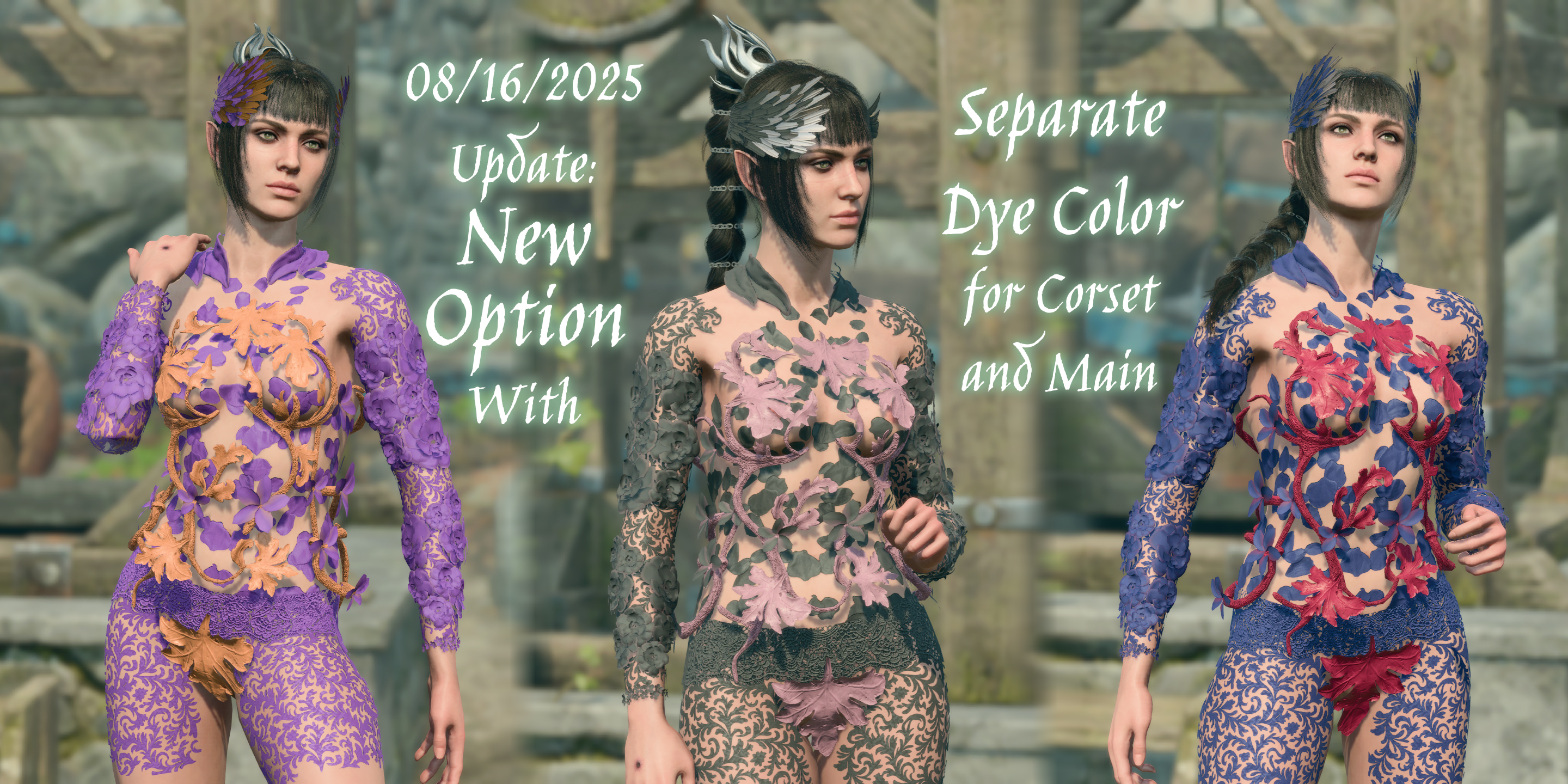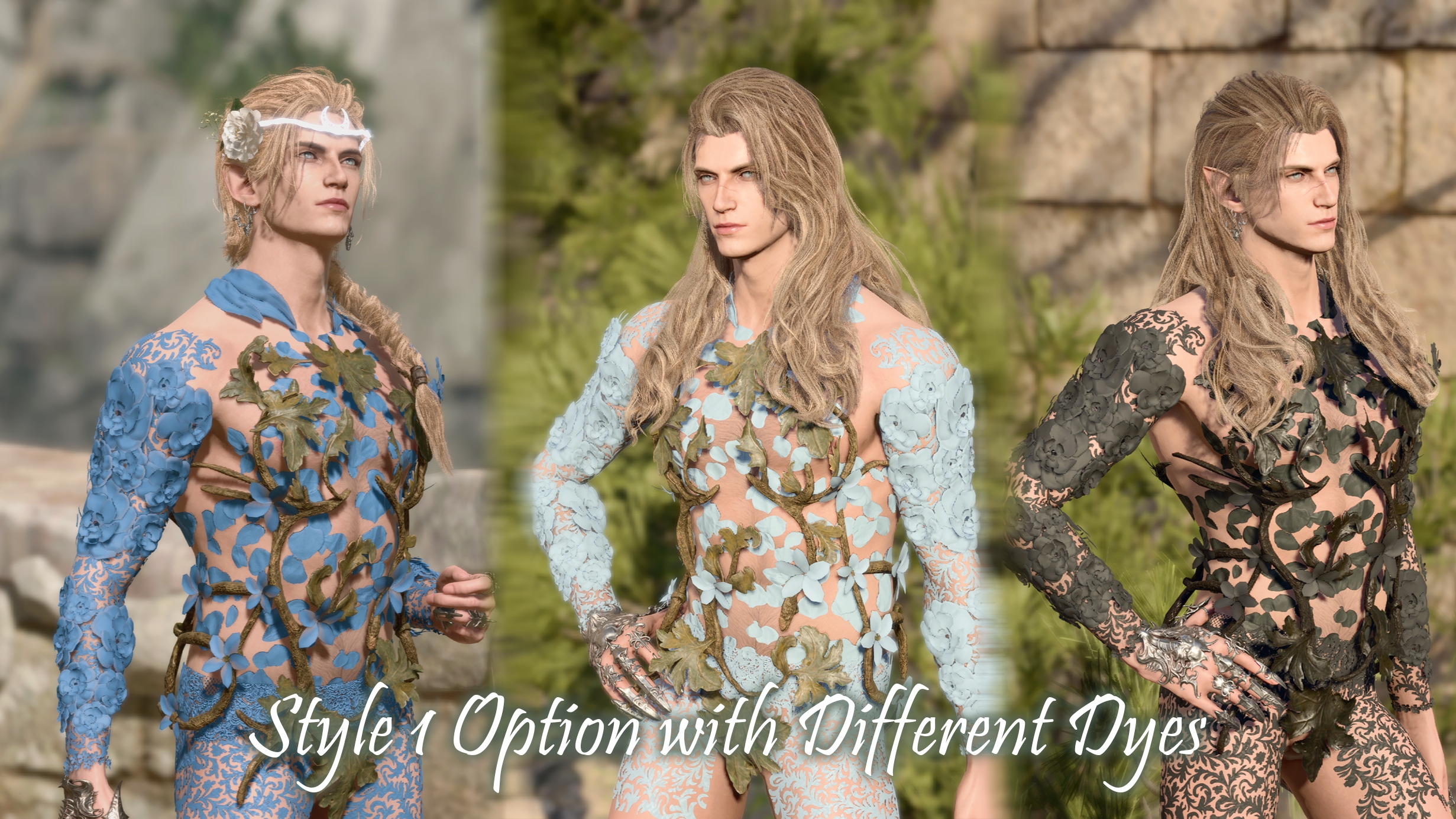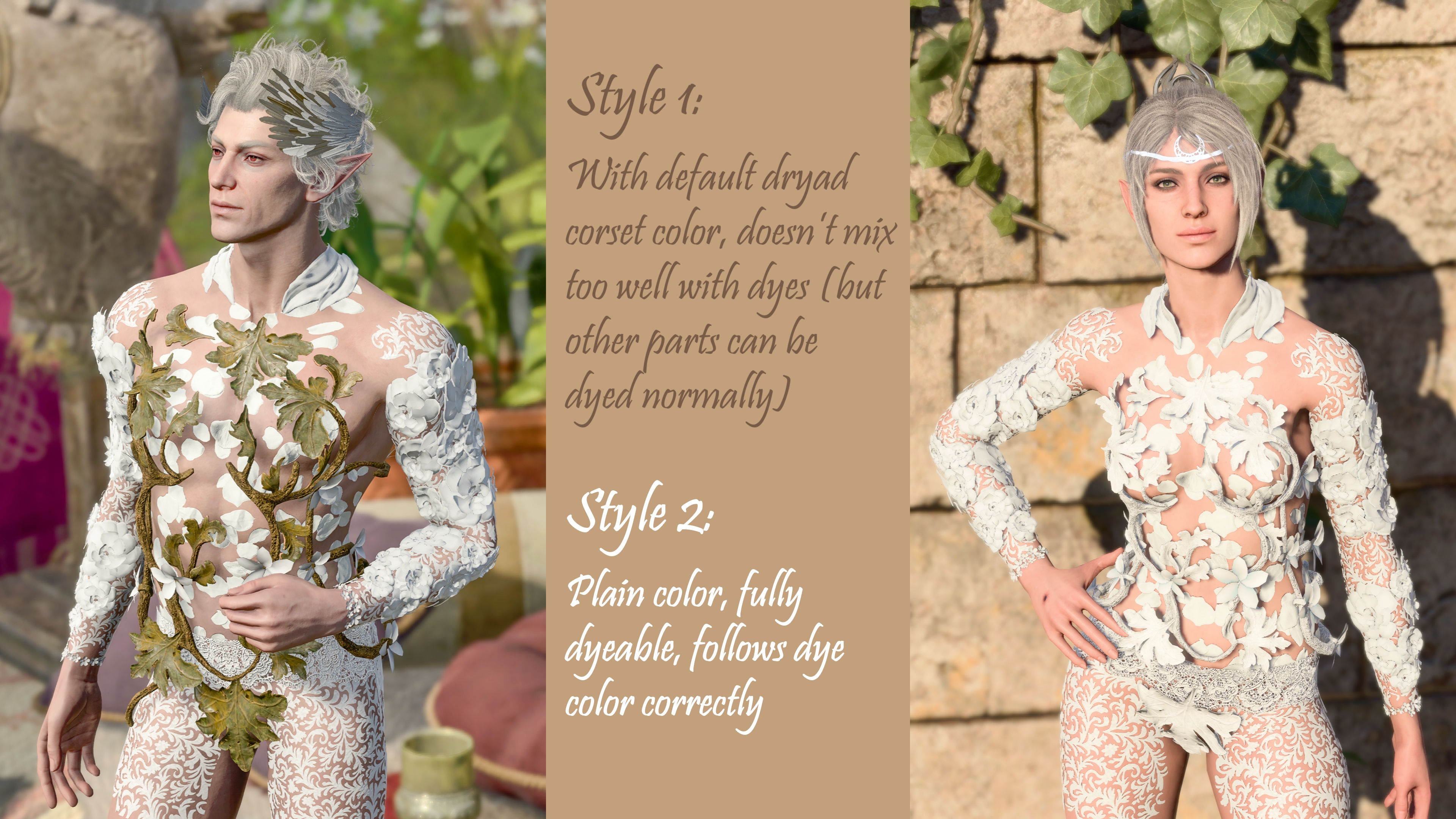 风格1(默认):保留原始绿色树精紧身衣(不易染色)。蕾丝和花朵可以染色。