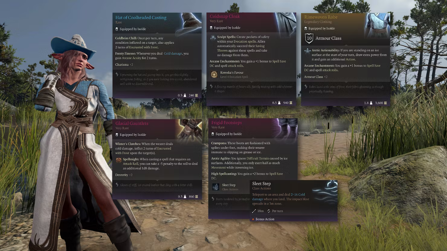 - 霜织长袍 – 当你在冰面上开始回合时获得额外行动。