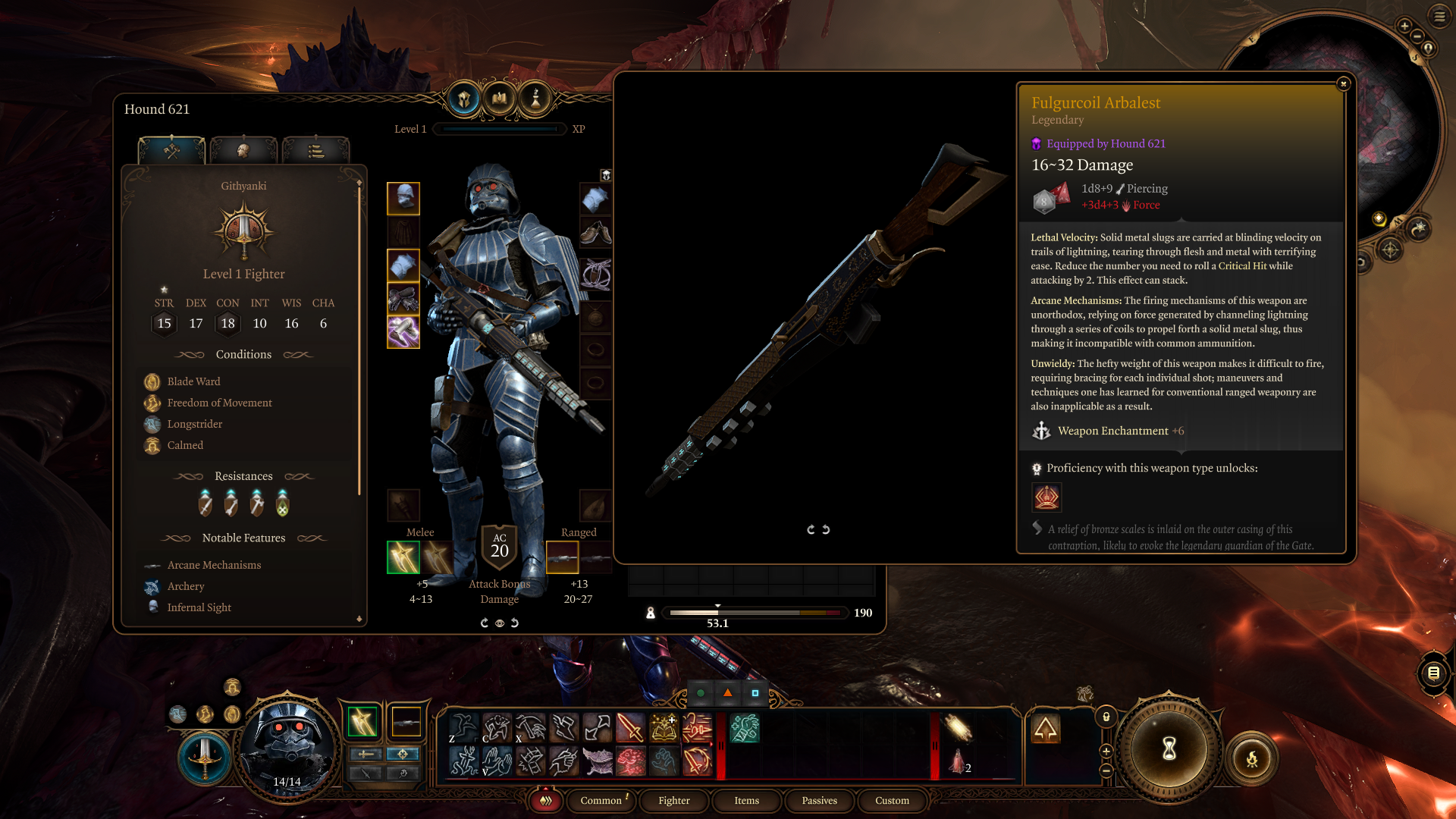 比其他远程武器造成更高的伤害和武器附魔,并且在暴击几率上也有额外加成,但每次射击都需要消耗5米的移动速度。该武器也不兼容常见的弹药/大多数针对远程武器的职业技能。