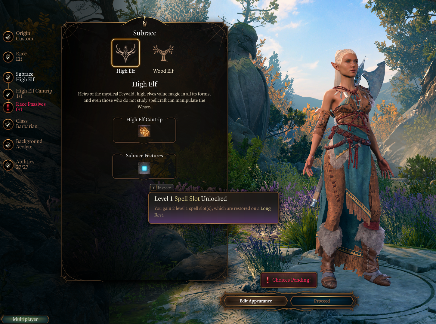 高精灵获得与法师相同的法术位,并在每个等级选择三个法术中的一个。