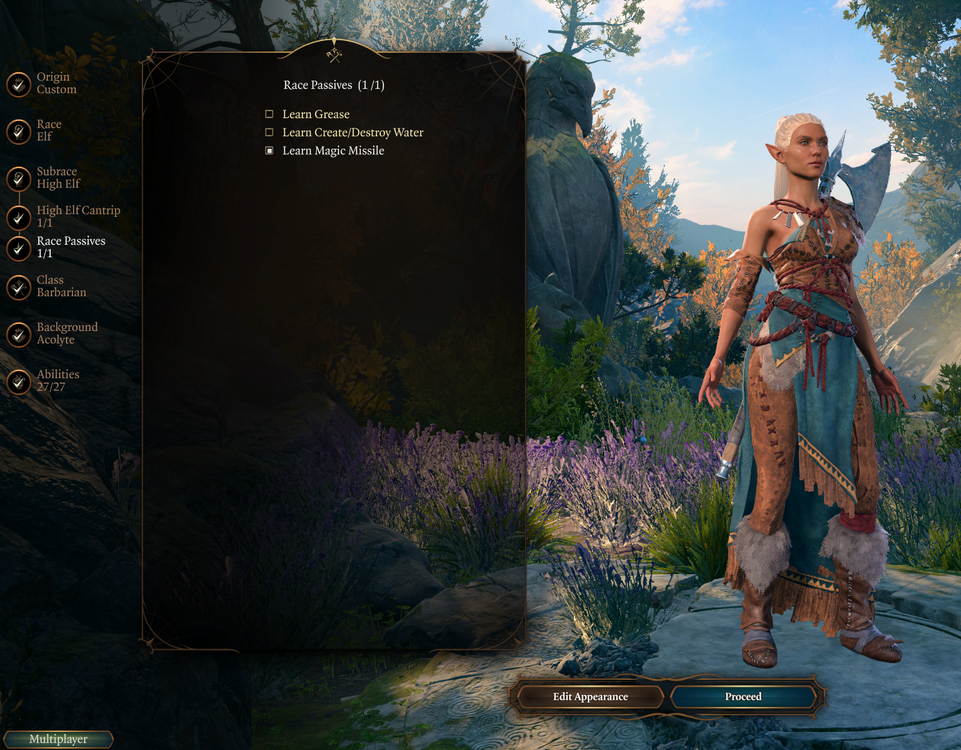1级:滑溜术、创造/销毁水源、魔法飞弹