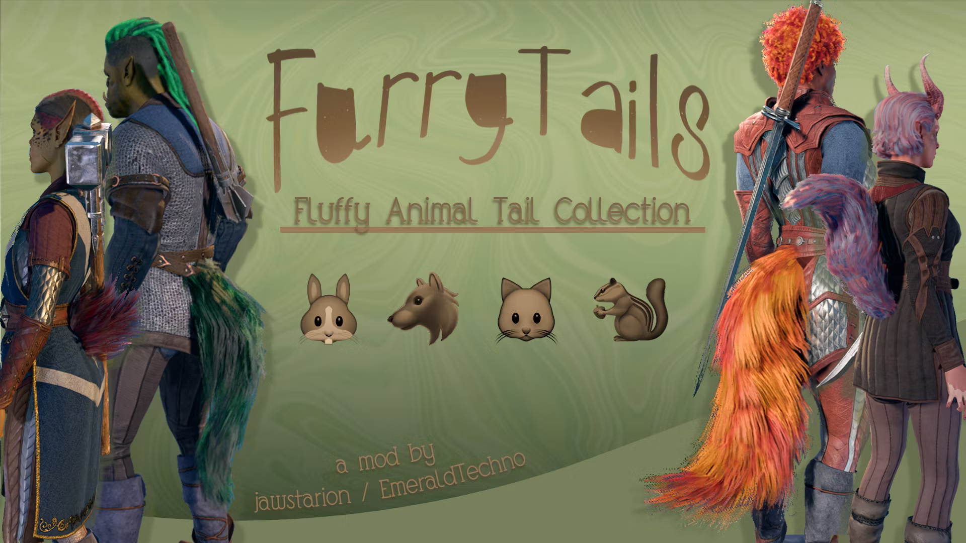 猫尾和狼尾具有物理效果,这意味着它们会像 Tiefling 尾巴一样移动。兔子尾和松鼠尾不会移动,仅用于外观。