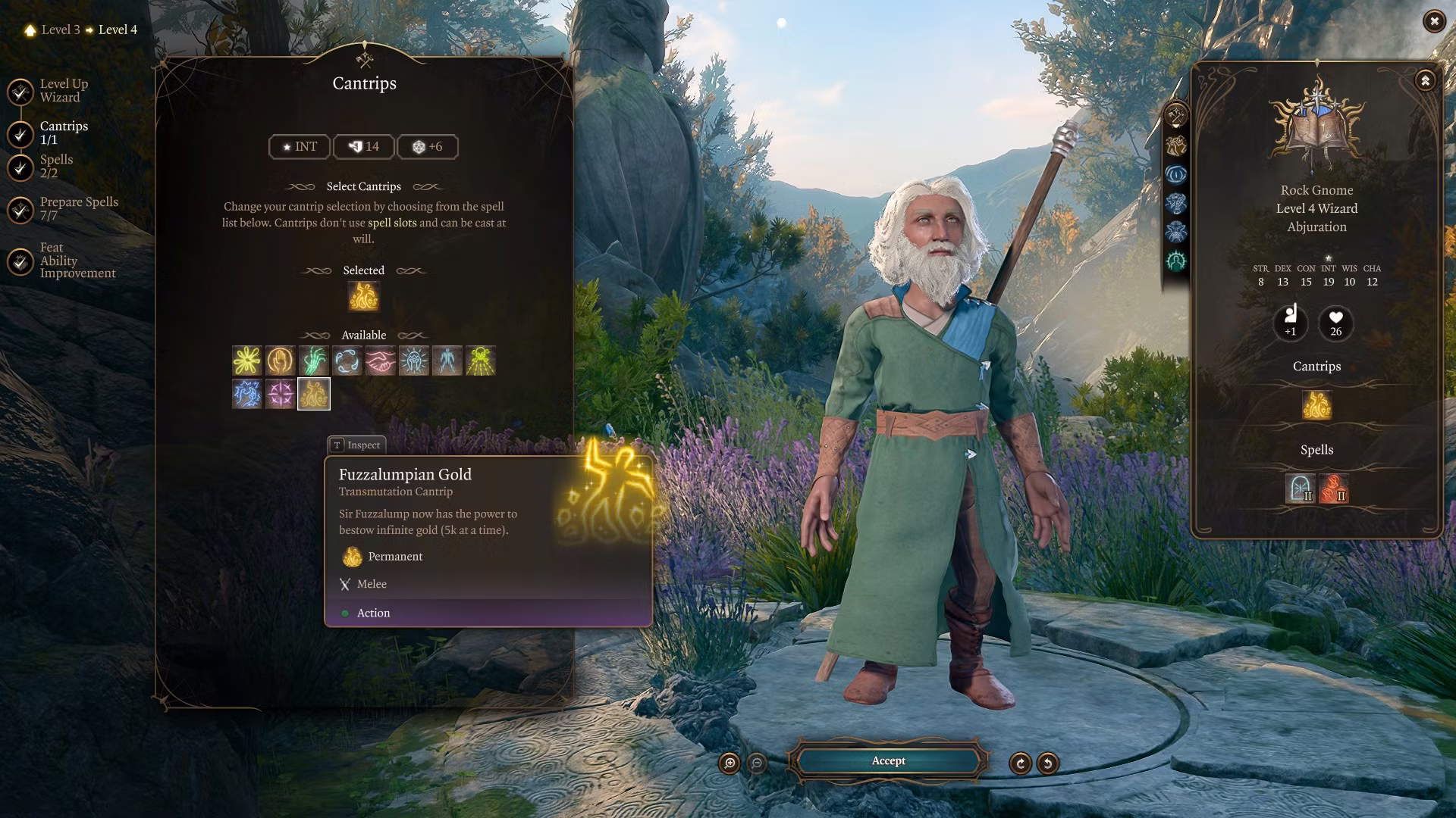 注意:虽然所有法师都可以使用此法术,但只有 侏儒 可以施放这个法术(出于主题原因)。对于可以由任何法师施放的版本,请参阅我创建的另一个模组:Conjure Gold for Baldur’s Gate 3 – mod.io