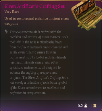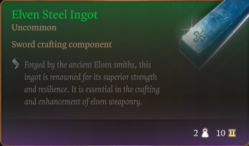 | 精灵钢锭 | 第一章 – 地底暗界,塞鲁尼特哨站内的箱子 第二章 – 达蒙铁匠铺二楼,最后一缕光明旅店 第三章 – 走私洞穴的财宝箱,巨龙岩 |
