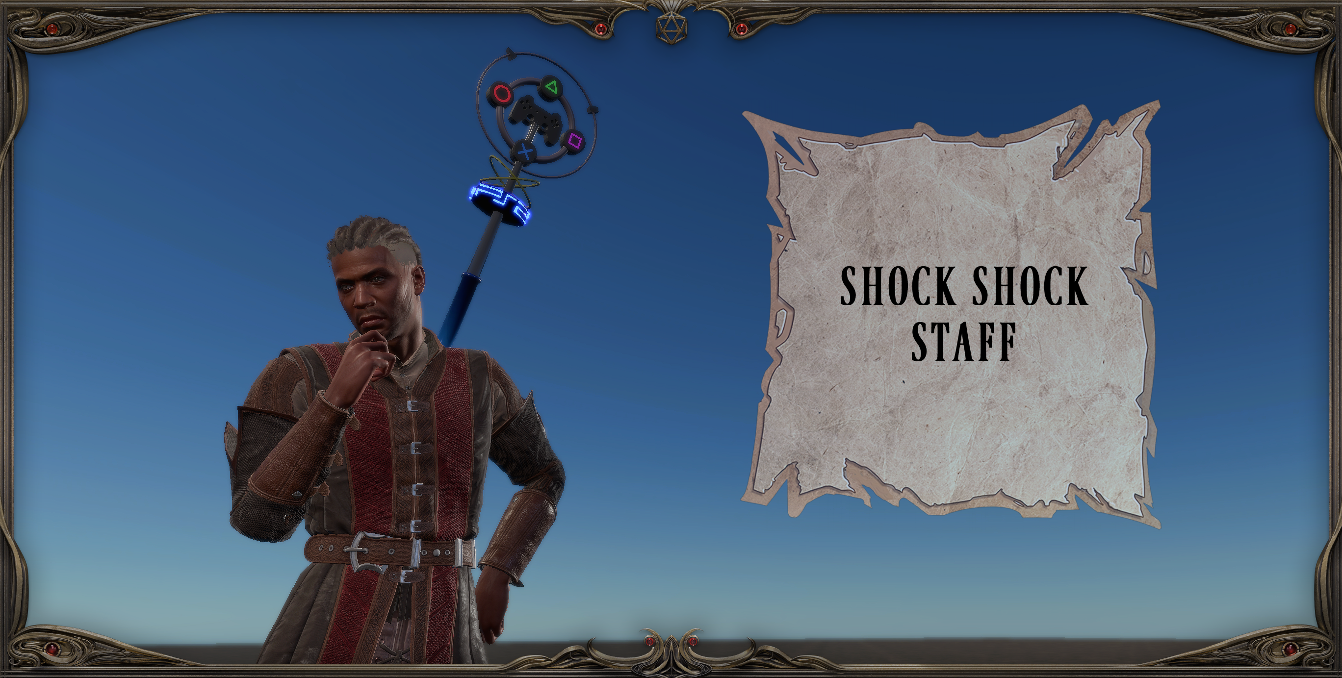 - Shock Shock Staff:一根四分之一长杖,成功击中时会释放闪电,并且能够使用召唤雷电的法术。