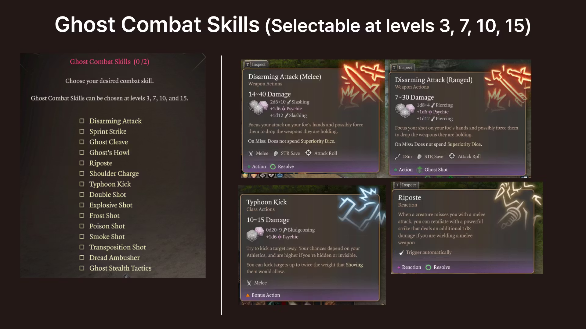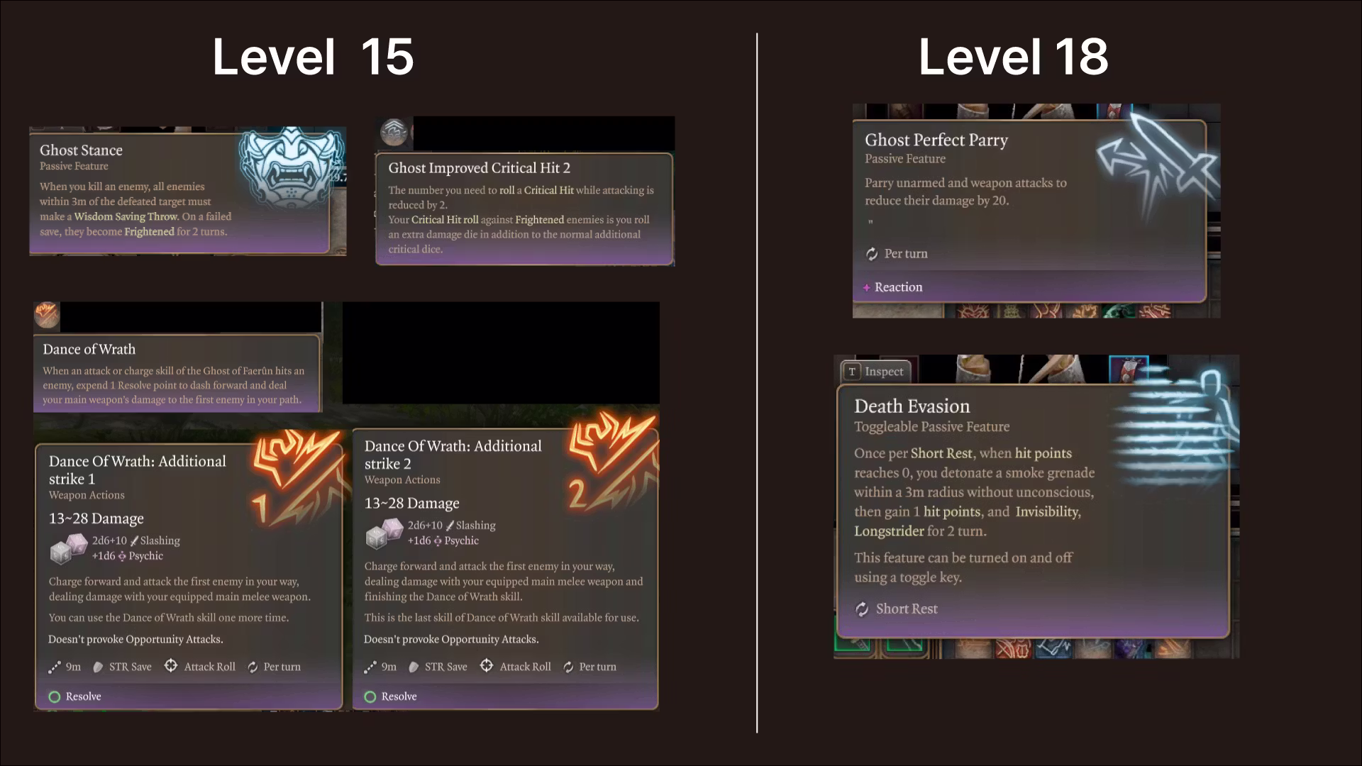 然而,在审查模组技能设置时,我发现它过于强大。因此,我对它进行了彻底的改造,以更好地反映原作《幽灵之岛》和《幽灵之城》中的元素,并扩展到20级。