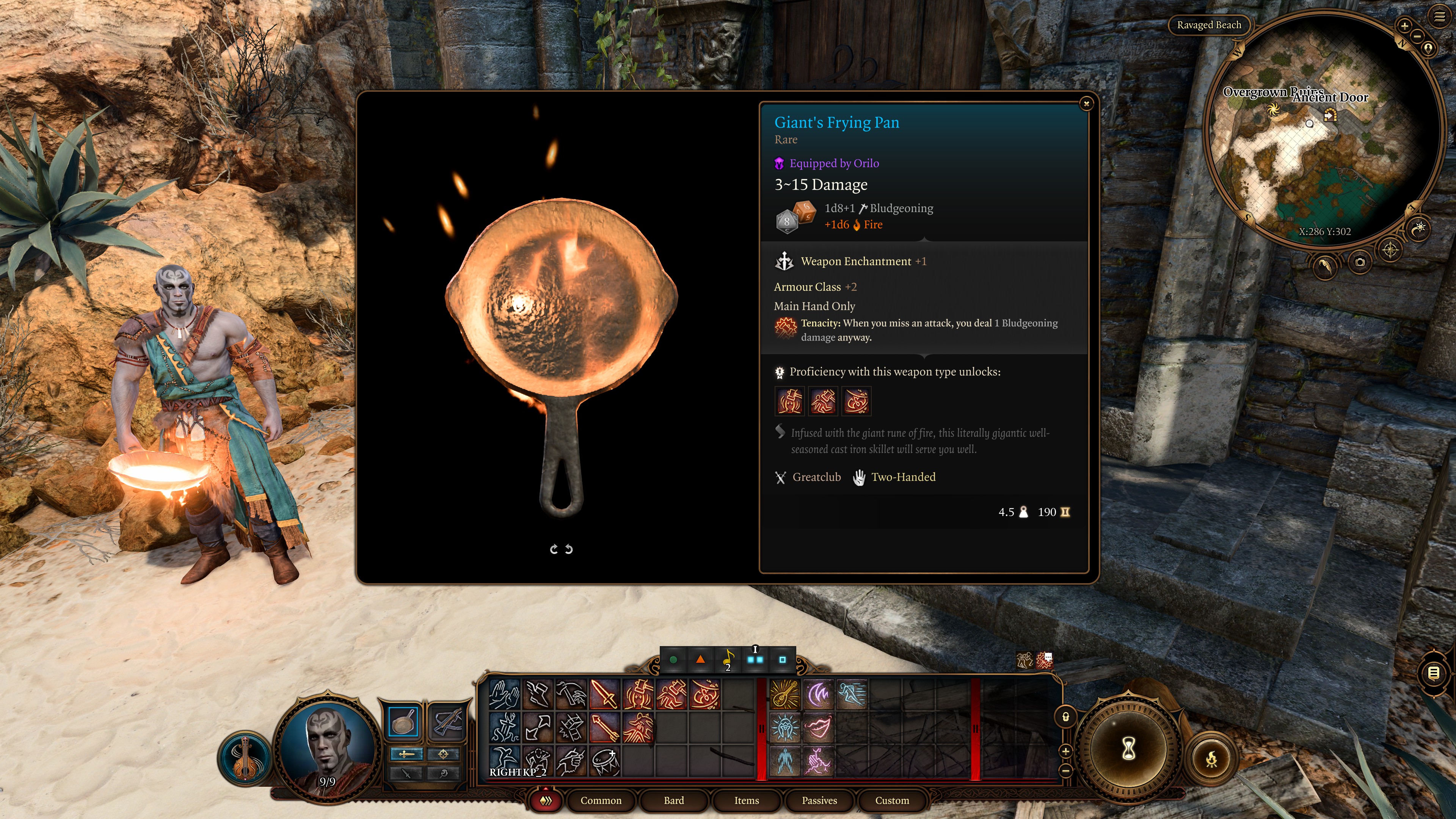 你是否曾经梦想用一个巨大的平底锅击打哥布林?巨人的煎锅是一件传奇的、由火巨人锻造的铸铁武器,上面刻有 Ild 魔符,并经过完美处理。它不仅热得烫手:它已经准备好战斗了。