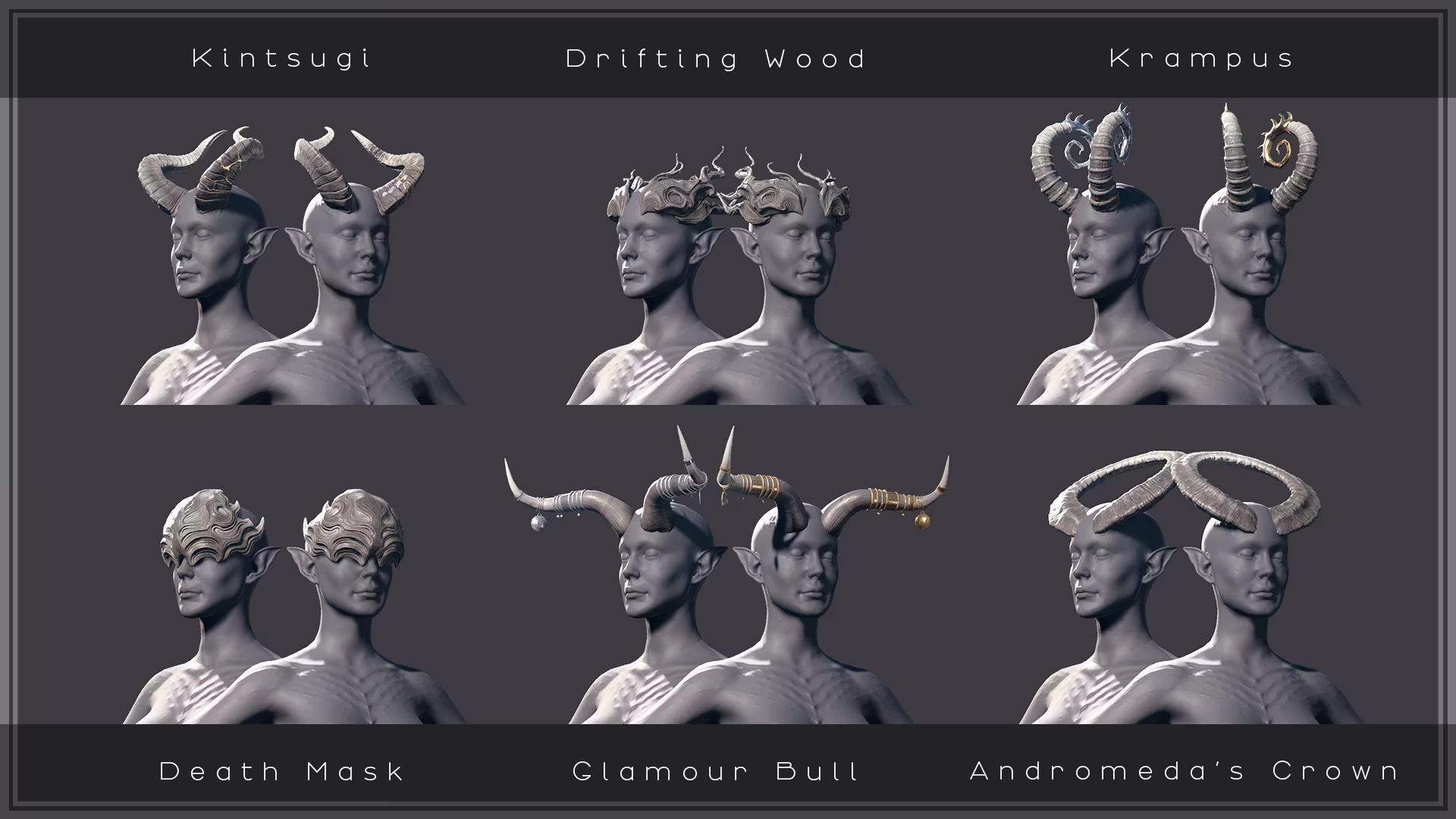 这个模组提供了一系列独特的幻想风格角,旨在为玩家提供更多样化的角色定制选项。总共有6种不同的角,其中两种有金色和银色变体,并且适用于所有身体类型(包括雌性和雄性角色)。每一种角都是我从零开始制作的,很高兴能够与大家分享我的作品。如果您在游戏中使用了这些角,请随时发送截图给我!我很想看看大家用它们做了什么。
