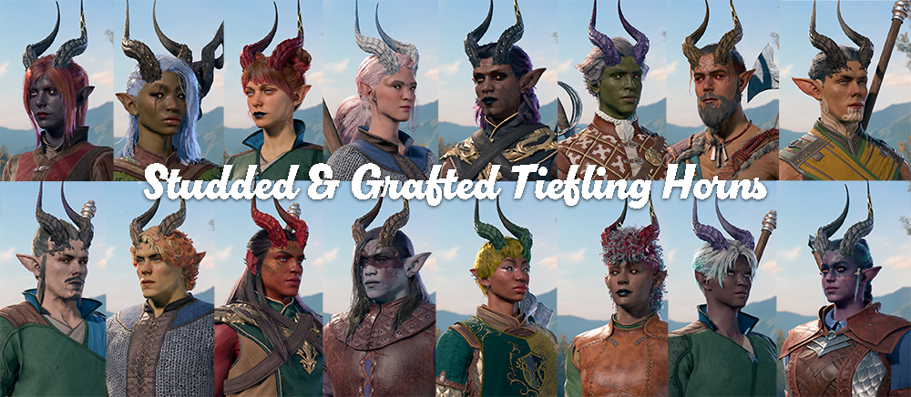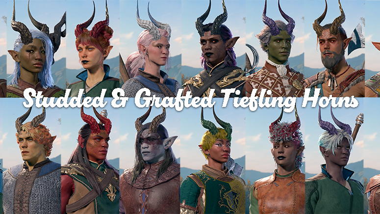 从一套 cambion 角改造而来的嫁接和钉饰 tiefling 角。4 种风格:豪华装饰、仅钉饰、仅嫁接和简洁版!