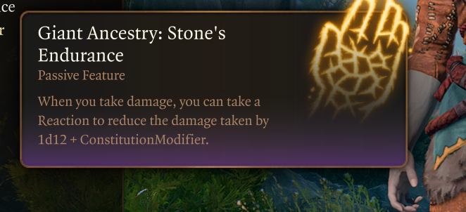 在第二级时,你获得巨人血统,可以选择六种不同的法术或反应: