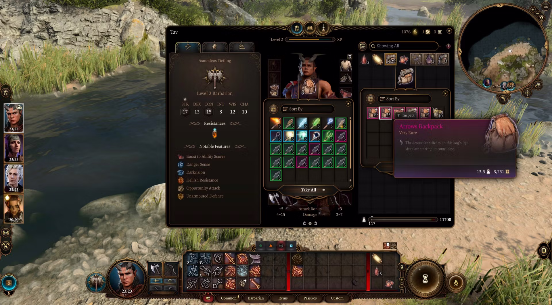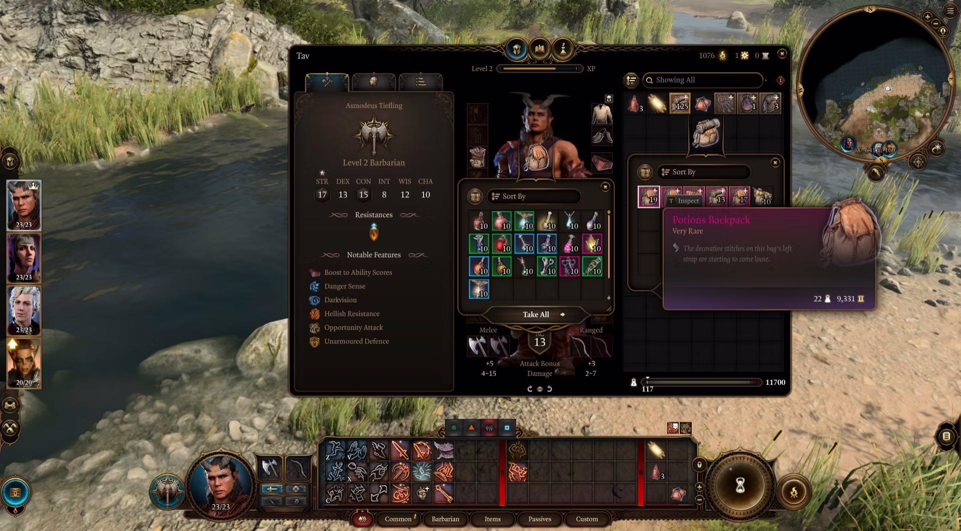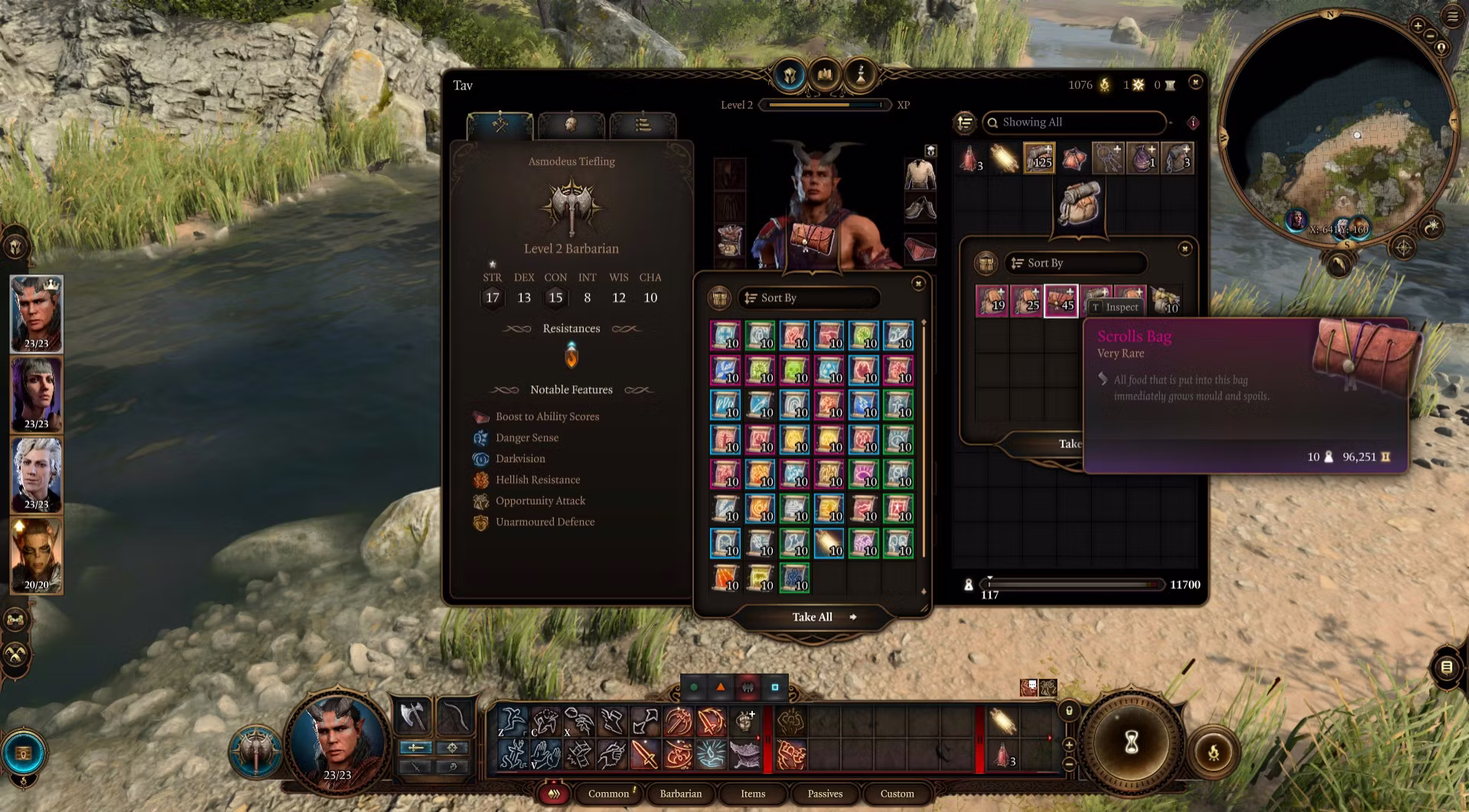作弊者背包 – 一个 Ethel 的头发来提升你的属性、灵魂硬币、额外的蝌蚪罐子、20级调试戒指、Noblestalk(常规治疗物品)、地狱铁、Mithral 原石、Noblestalk 召唤项链(详见下文)