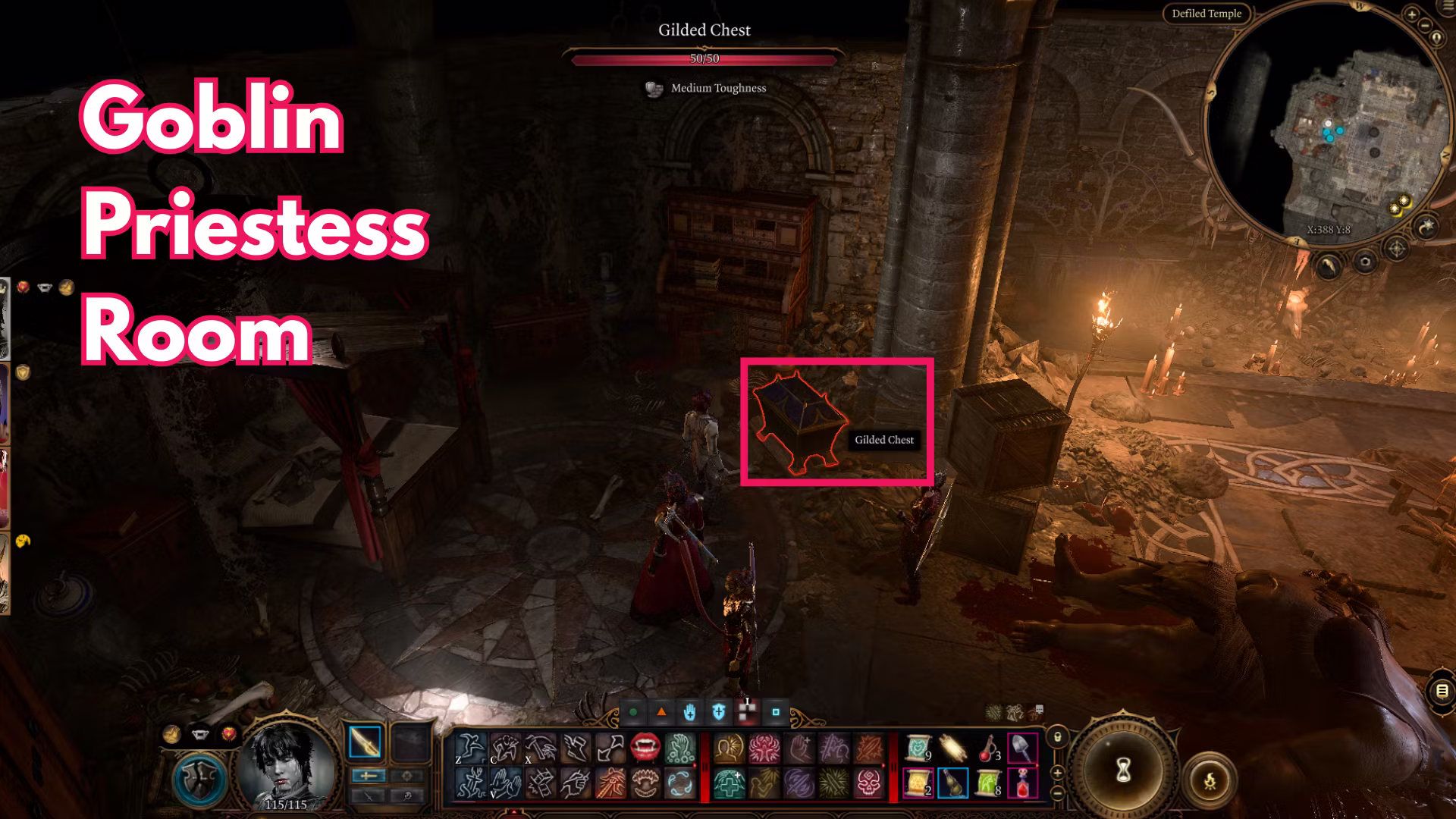哥布林营地:祭司 Gut 的房间里靠近 Polma 床边的箱子。