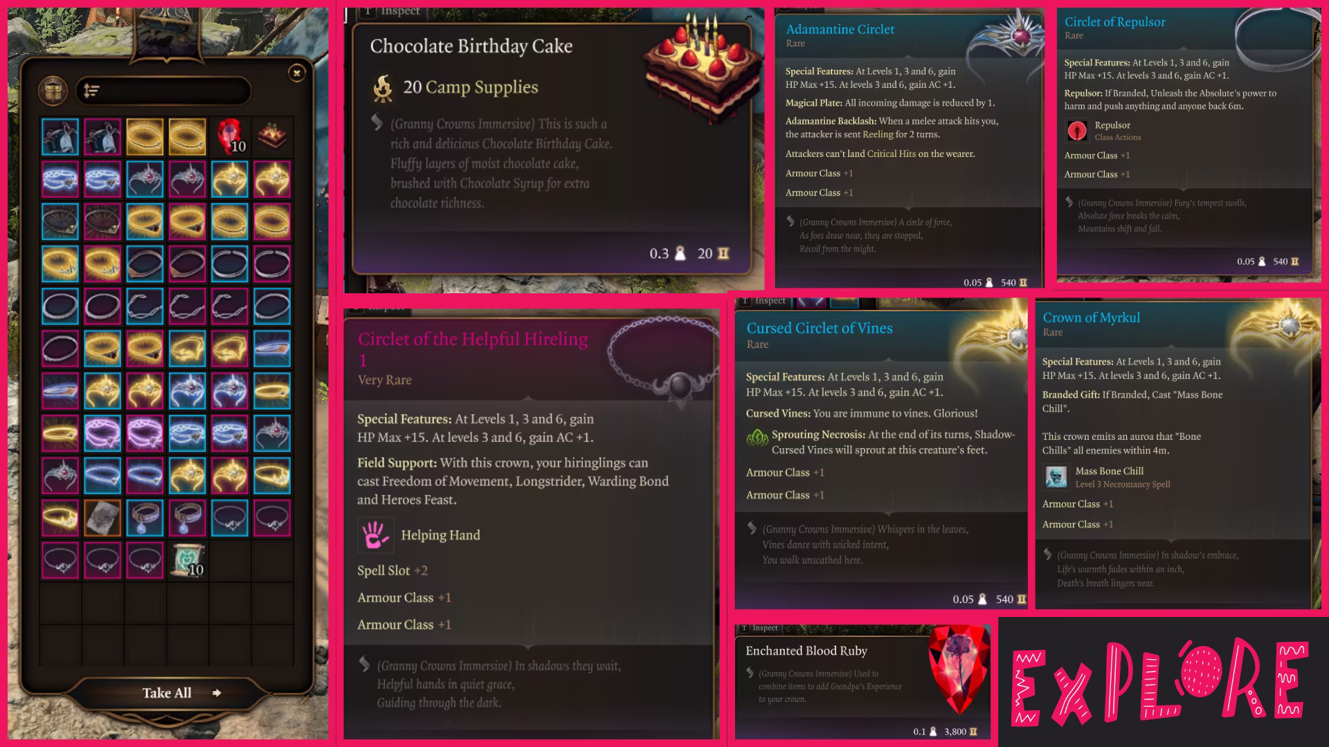 奶奶的王冠系列散落在荒野、地下暗界、育婴所、阴影诅咒之地以及班德尔城。尽情享受吧,要知道你被爱着。