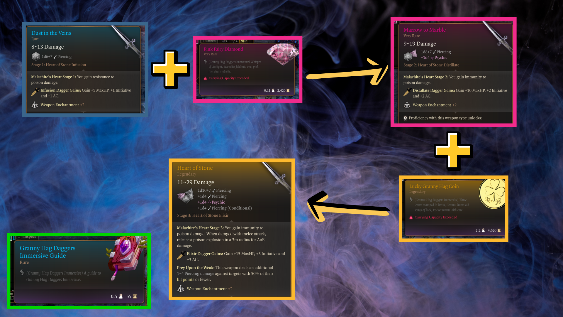 使用 粉红仙女钻石 将匕首从第一阶段升级到第二阶段。