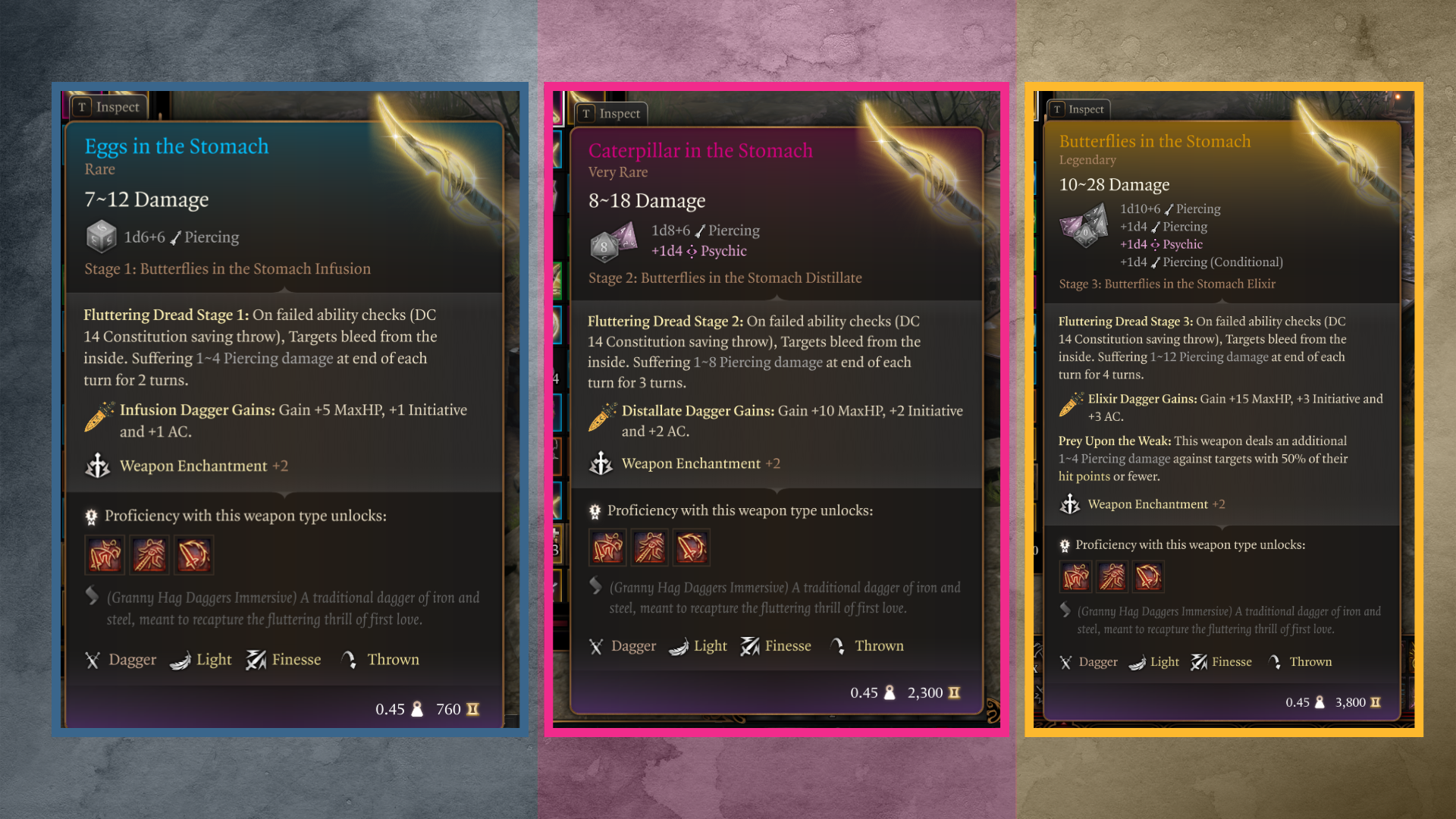 每把匕首有三个阶段。