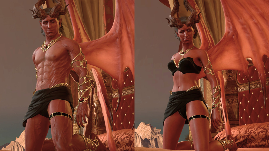 此模组替换了哈尔勒普在两种形态下的服装和短裙,并用金色饰品替换。这些金色饰品在整个场景中都会保留,只有衣物会在场景中间被移除。