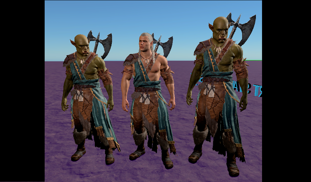 此模组为半兽人种族添加了强壮的体型,而不改变标准体型。新的体型(3和4)使得半兽人的身高高于其他种族的强壮版本。