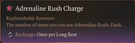 新增了肾上腺素冲刺:你可以使用一次额外动作进行一次长距离移动,使你的移动速度翻倍,并获得等于熟练加值的临时生命值。此特性可以使用的次数等于你的熟练加值,在长时间休息后恢复充能。