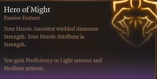 你真正体现了祖先的美德。根据你的英雄先祖,你在力量检定、敏捷检定或智力检定上具有优势。