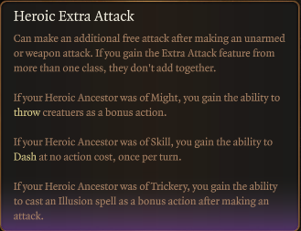 - 如果你的英雄先祖是诡计型,在攻击后可以使用一个附赠动作施放一个幻术法术。