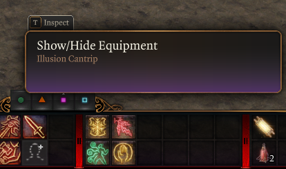 类似于游戏中的隐藏头盔功能,此模组提供了一个名为显示/隐藏装备的法术,允许你使佩戴的斗篷、手套、护甲、靴子、戒指和护身符槽位变得不可见,同时保留装备加成。