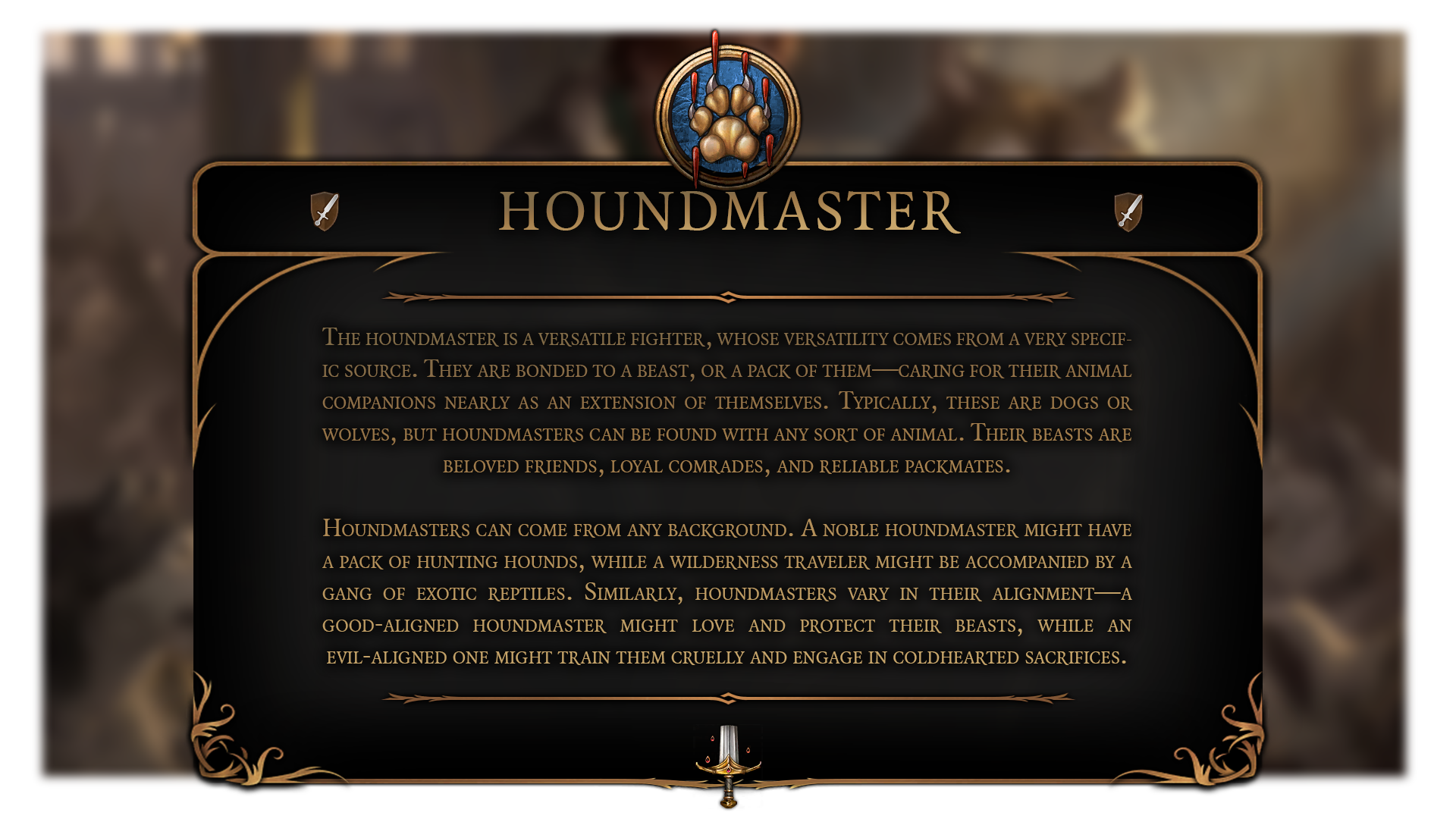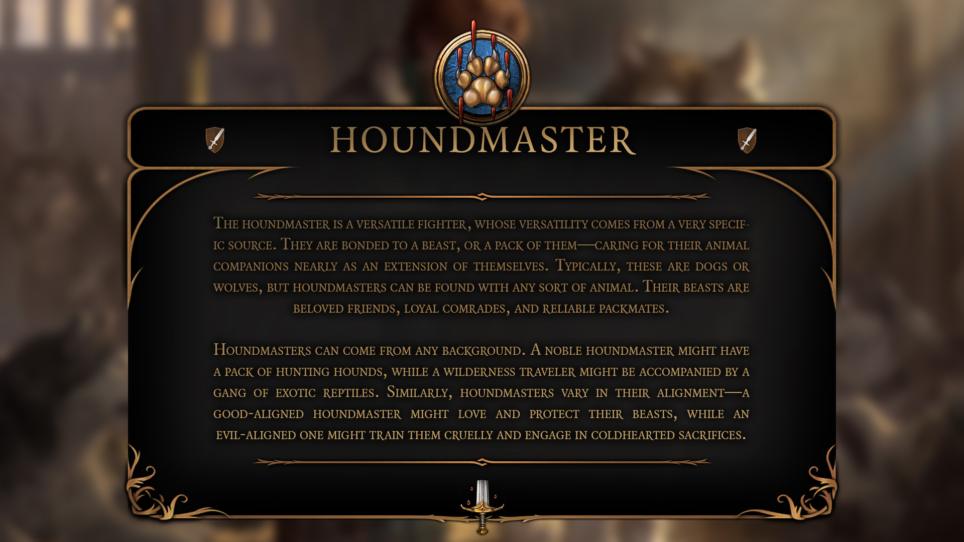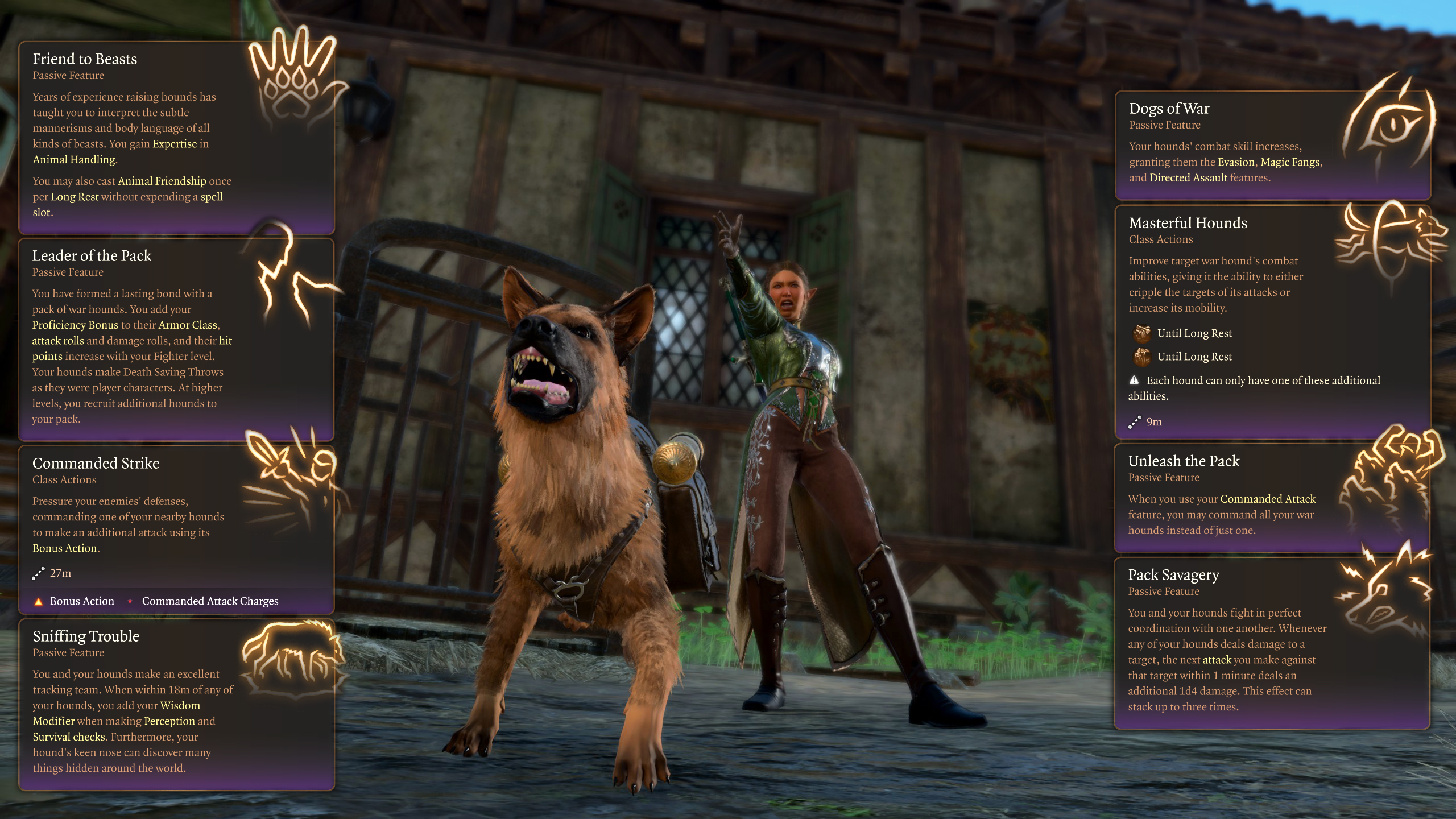 这个模组为《博德之门3》中的战士角色引入了一种新的副职业:猎犬大师。它提供了一系列独特的技能和能力,使玩家能够扮演一名训练有素的猎犬导师,并利用这些忠诚的伙伴来增强自己的战斗策略。