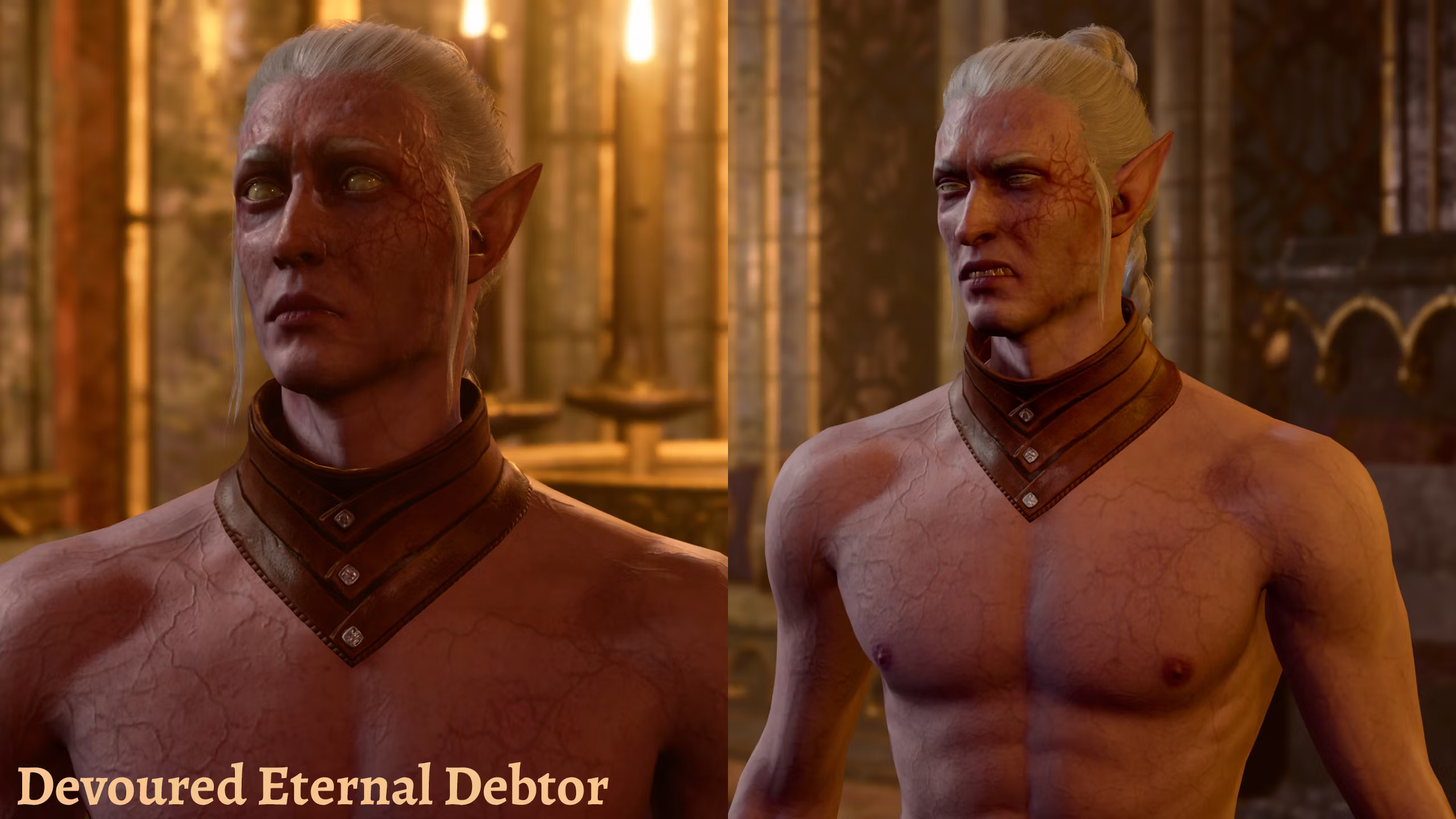 永恒债务人都有了新的外观。不再穿着破旧的衣服。变化内容:《被吞噬者、不朽者、忠诚者、嘲讽者、完美者、羞愧者、余烬者、神学家、不洁者、先见者、窥视者和华尔兹永恒债务人都有了新的服装。一些债务人的外观完全重新设计。