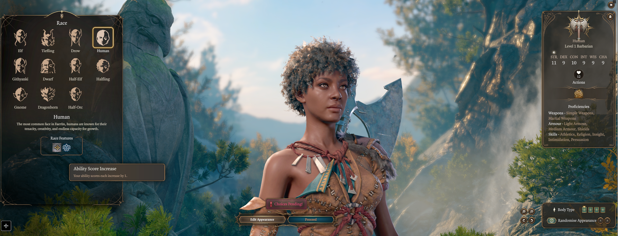 重制了《博德之门3》中的人类种族,将其恢复为2014年官方手册版本,而不是Larian Studios的版本。