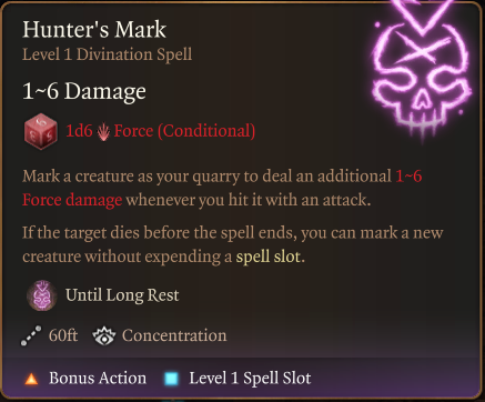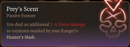 此模组将《猎人印记》的伤害类型改为力场伤害,不仅适用于武器攻击,还适用于所有类型的攻击,使其更符合 D&D 5e 在 2024 年更新后的规则。野兽伙伴被动技能“猎物的气息”也会造成力场伤害。支持第7、8和9级法术位。