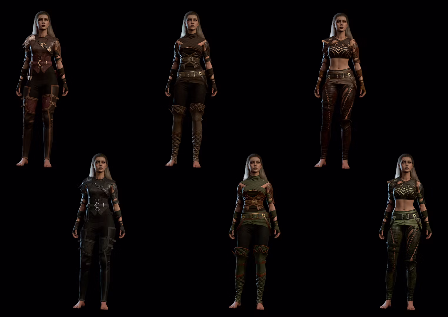 三套以猎人/掠夺者为主题的服装,每套有两个颜色变体。