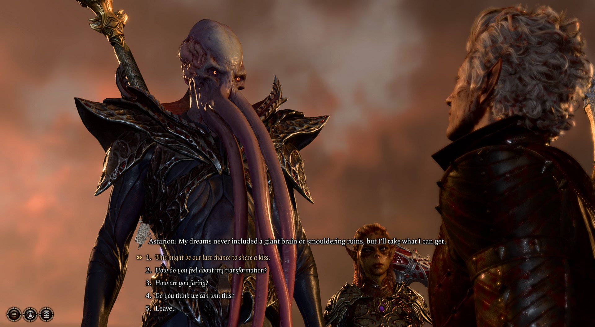 一些过场动画可以正常工作,但其他则看起来非常糟糕。如果某个过场动画或对话涉及非标准姿势(如拥抱、跪下、躺下),那么这个模组更容易导致这些场景出现问题。此模型比正常的玩家脑虫模型高得多,因此相机高度有时会太低。在尾声中拥抱 Shadowheart 的情节意外地令人恐惧。请注意。