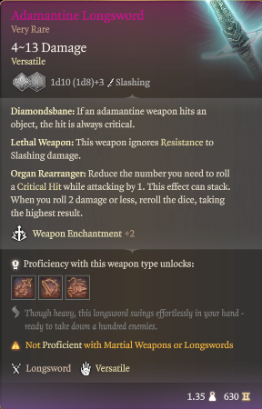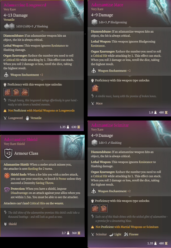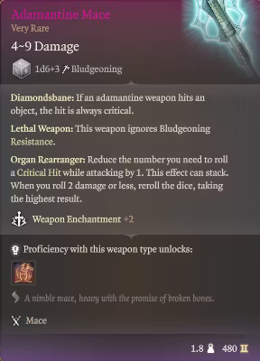 - 长剑、战锤、弯刀 – 添加了器官重组器(来自Undermountain国王的小刀被动技能);这些武器非常适合注重暴击的角色构建,遵循钻石bane设定的暴击主题,而不给一次性触发效果的构建提供额外的东西。这使得战士、圣武士和野蛮人可以在不使用短剑的情况下专注于暴击方向,并为盗贼提供了替代Undermountain国王小刀的选择(同样允许他们通过挥舞两把武器在18点时进行暴击而不是19点)。这些武器也应该保持其价值进入第二幕,不需要立即更换。
