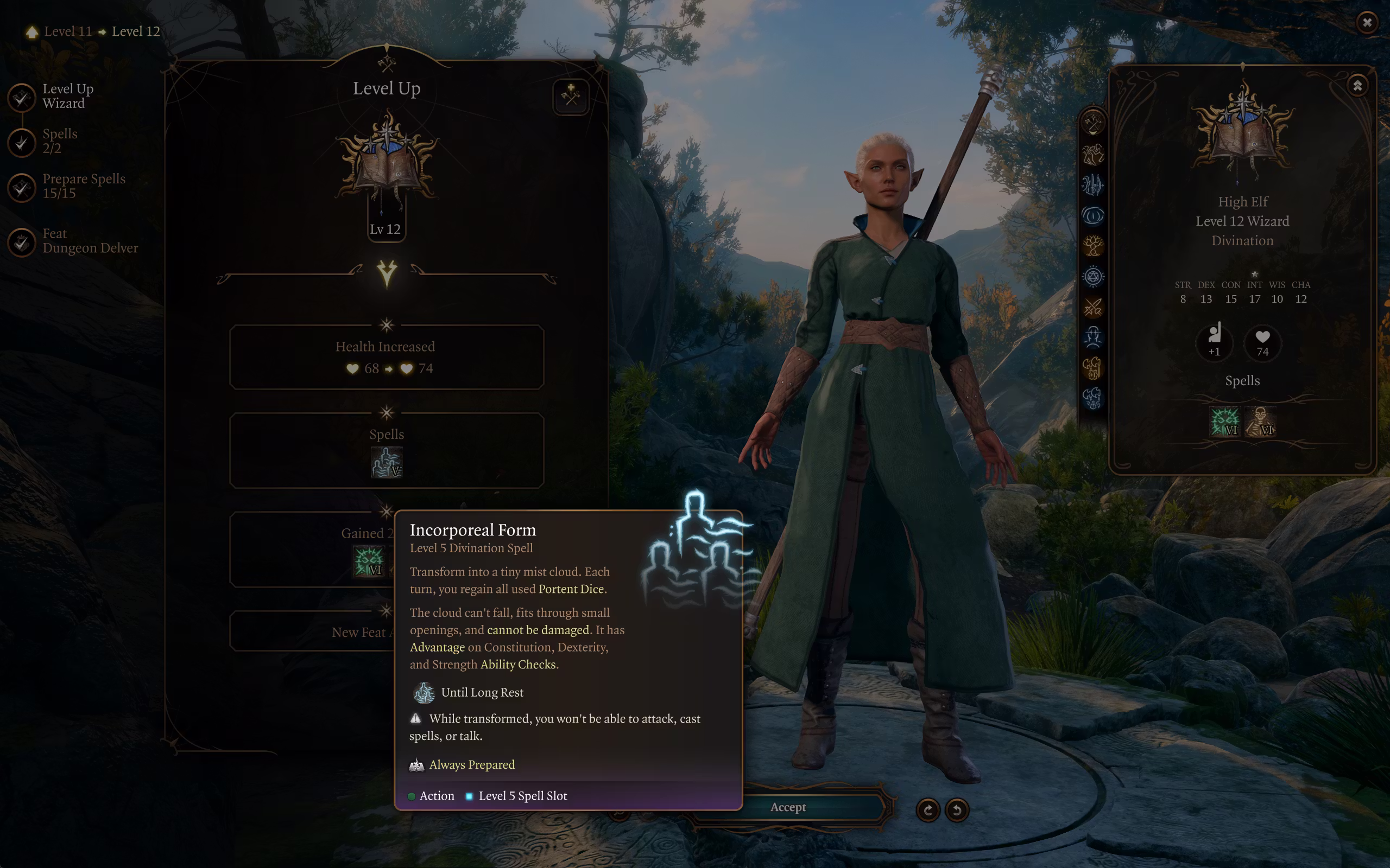 添加了适用于第12级占卜术士的法术“无形形态”。在战斗中使用该法术可以恢复已消耗的先兆骰。