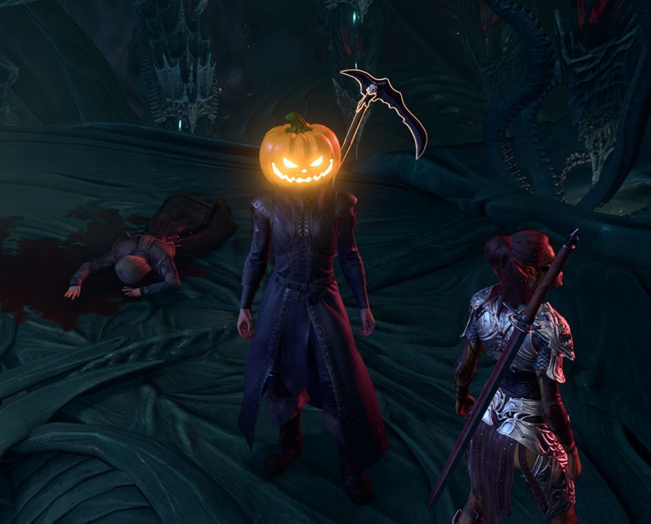恰逢万圣节,这款模组为游戏添加了一个你可以戴在头上的南瓜灯来吓人、一件可以转化亡灵的长袍以及一把可以选择齐眉棍或大斧形态的镰刀。