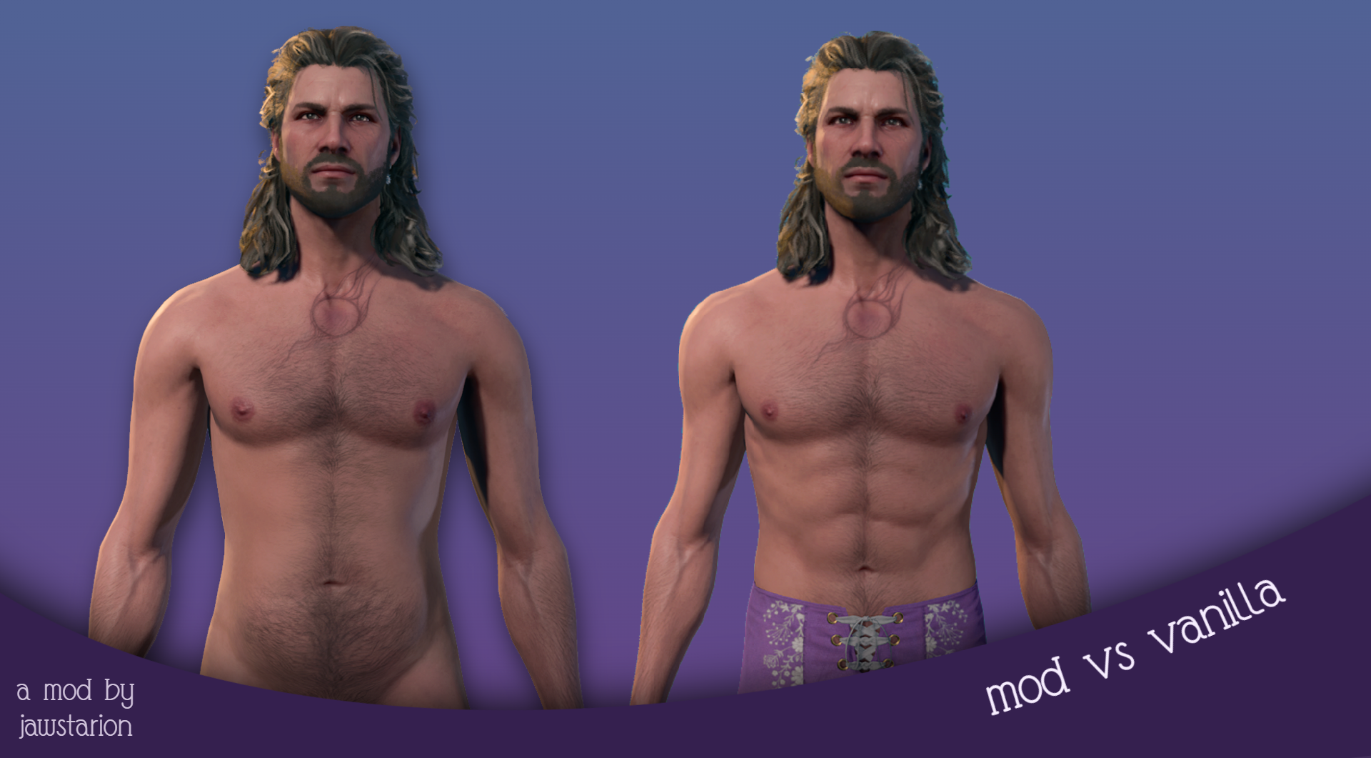 已知问题:加尔的内衣有严重的穿插问题。盔甲和衣物也可能显示出一些皮肤穿插。当使身体模型变大时,这几乎是不可避免的问题,尽管我已经尽量注意到了这一点,你可能会遇到一些皮肤显示的情况。