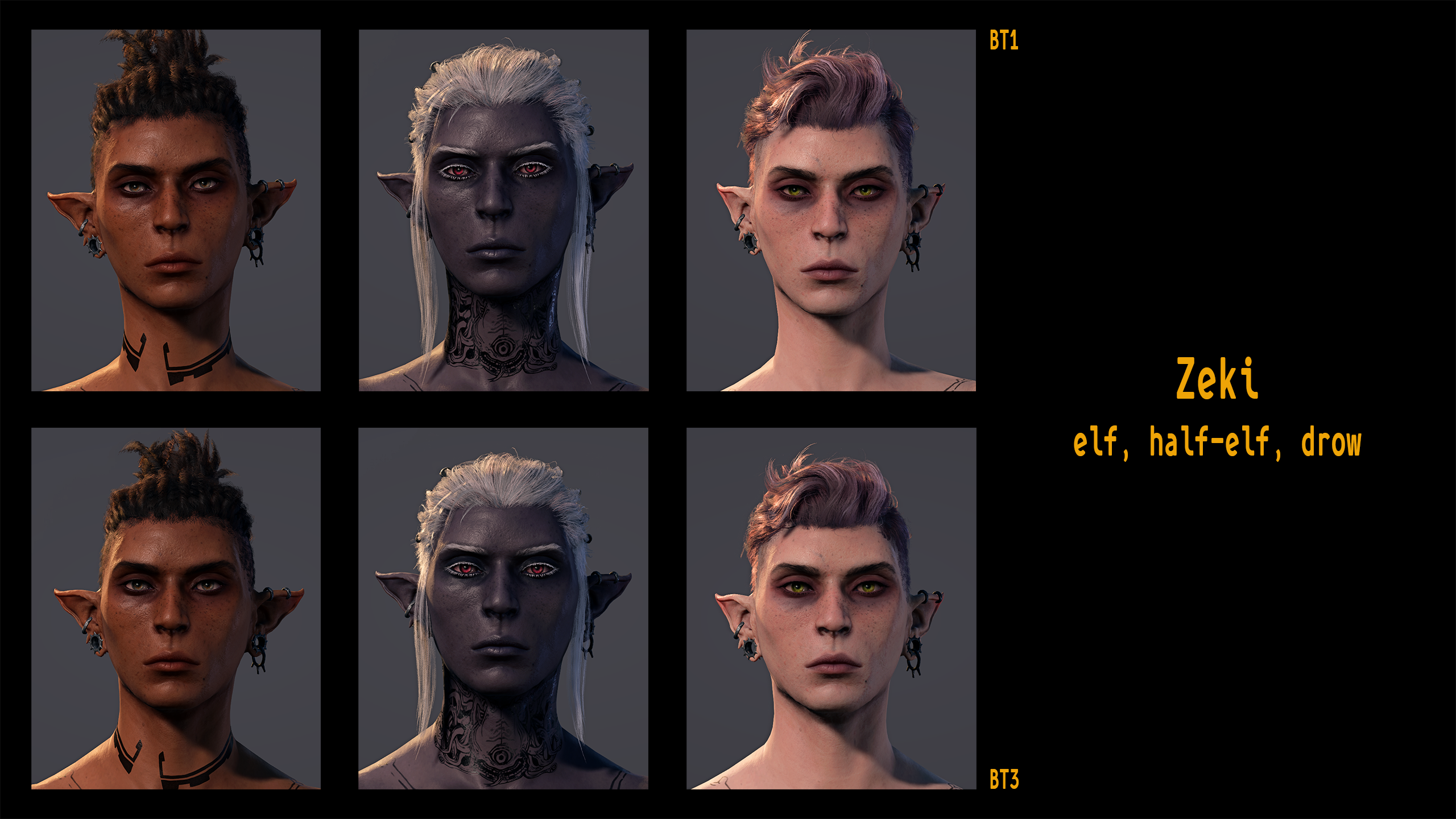 - 两个我的男性头像重新制作到 BT1 和 BT3 的精灵/半精灵中