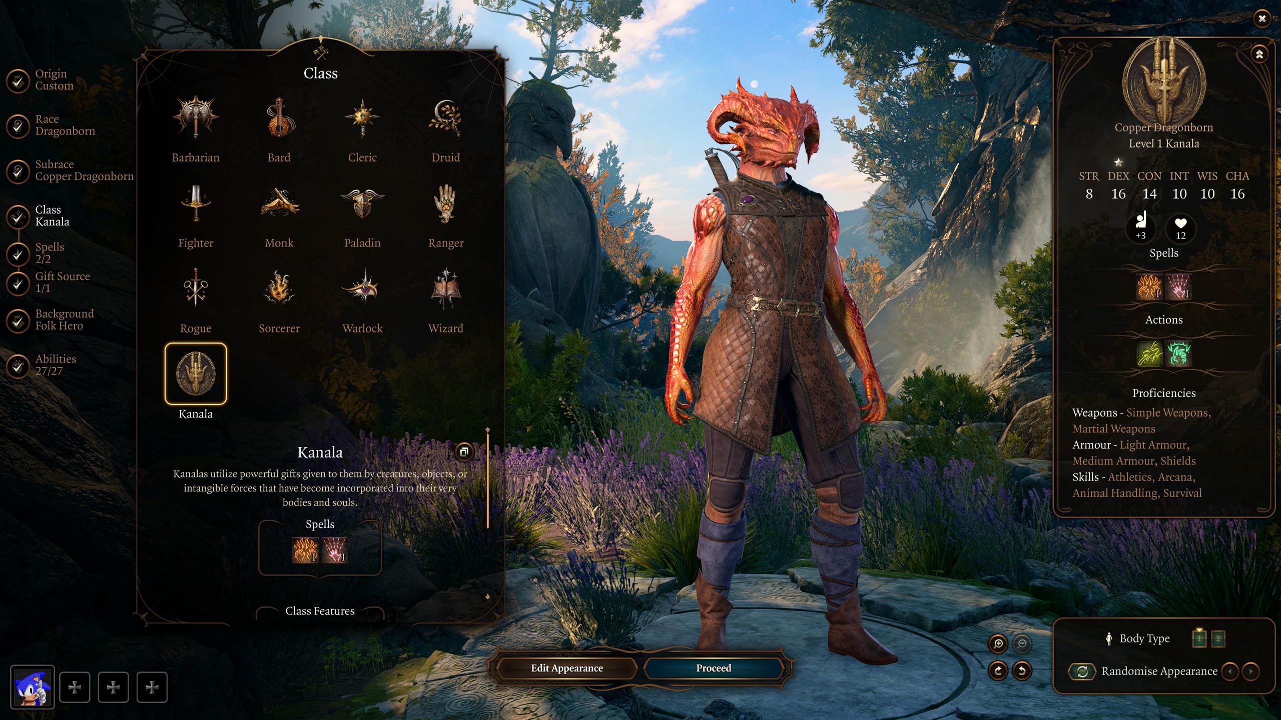 来自非官方扩展模块 Walker’s Encyclopedia Pagrodina 的 Kanala 类现在可以在《博德之门3》中使用!这个魅力半施法者通过使用术士的法术位和获得 Locus 形态而区别于圣武士和游侠。这些形态通常提供新的、有趣的额外动作方式——从远处拉近敌人,将元素力量注入攻击,获得其他武器类型的武器动作等!然后,在选择了一个子职业后,你将获得绑定法术的访问权限。这些长休息恢复的法术是熟悉的法术的增强版本,不需要法术位,并且在关键时刻非常有用!