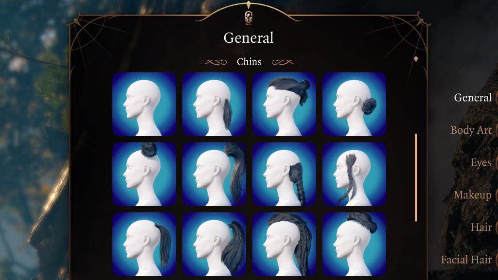 下巴槽:侧面/胸部部分(如斗篷辫子或固定发丝)