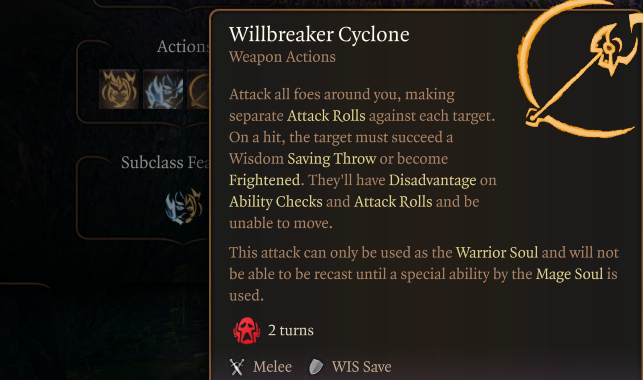 当您在第3级选择这个子类时,您可以获得中型护甲和所有长柄武器的使用权,并且这些长柄武器具有“精巧”属性。