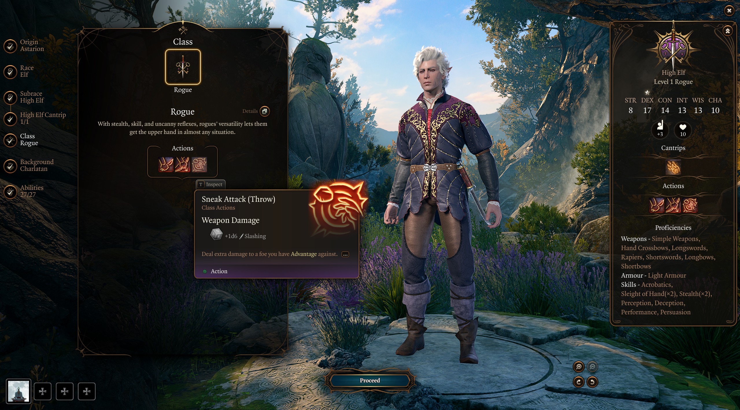 潜行攻击投掷:你可以用具有“敏捷”和“投掷”类别的任何武器进行潜行攻击,造成额外的伤害。该技能会随着投掷增益(如投掷之戒、无拘束库希哥手套和追踪者手套)而增强。