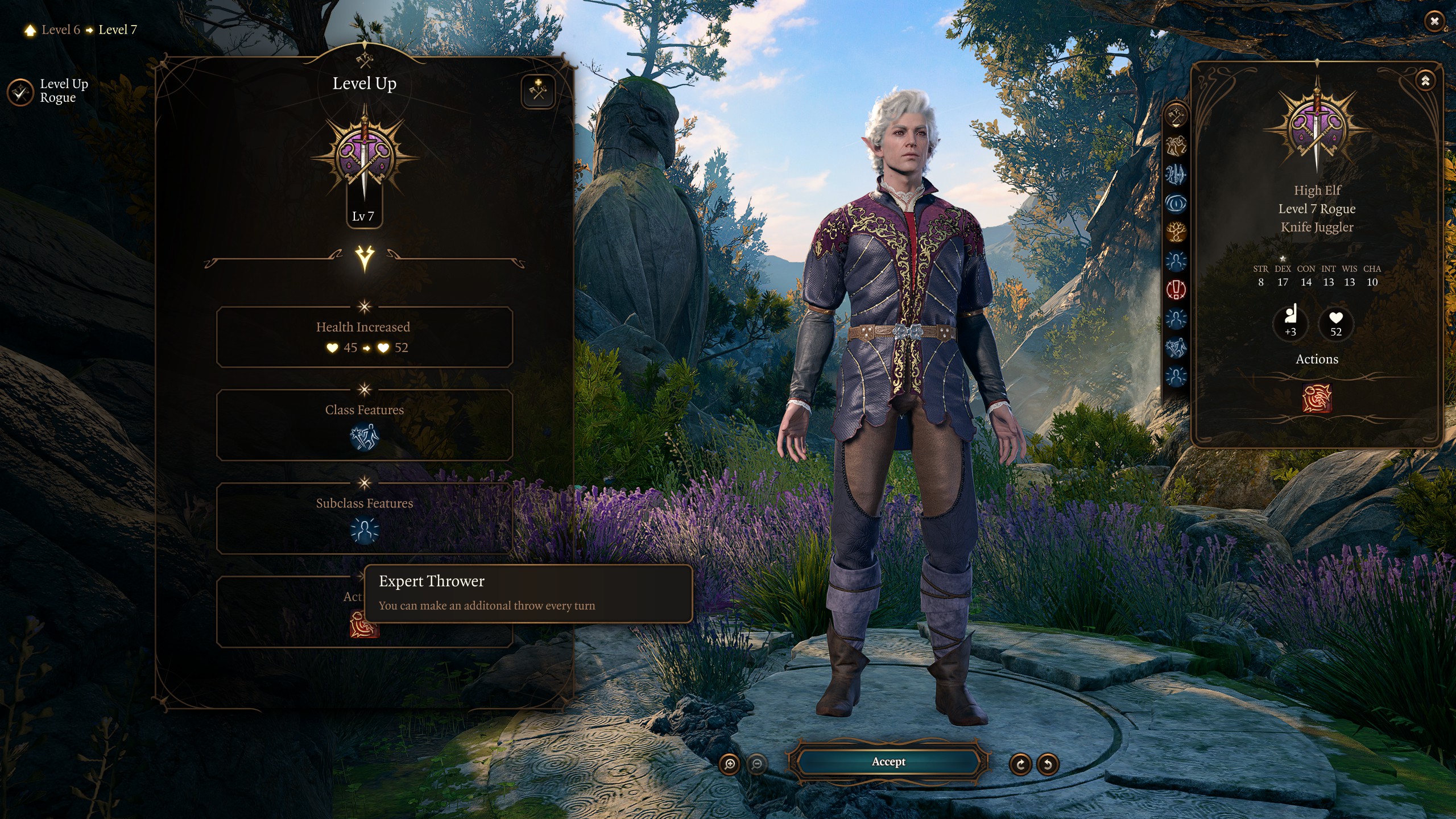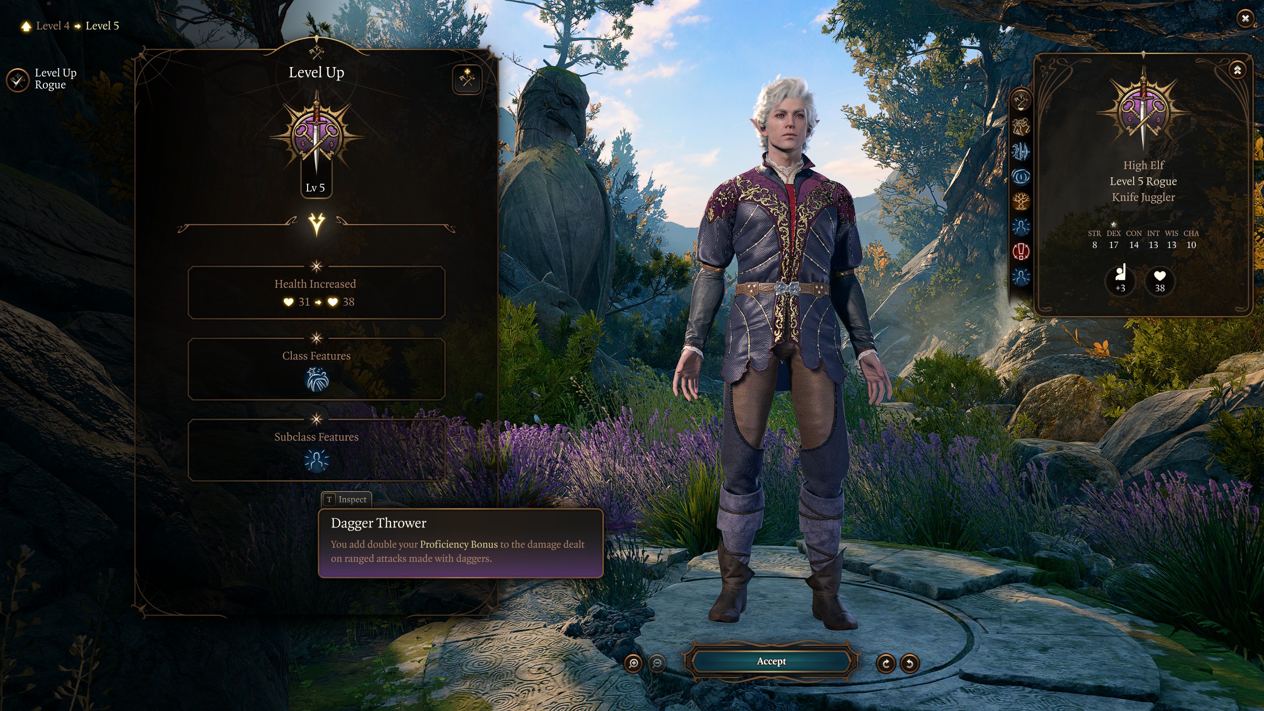 飞刀投掷者升级:随着熟练加成的增加,伤害也会相应提高(+8固定伤害)。