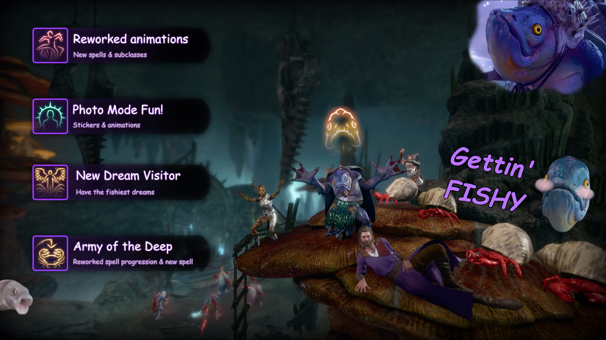 该模组包括一个新的可玩种族,带有三个法术、一个新神明供祭司选择、拍照模式贴纸和姿势以及为您的完美梦境守护者提供新的种族选项。