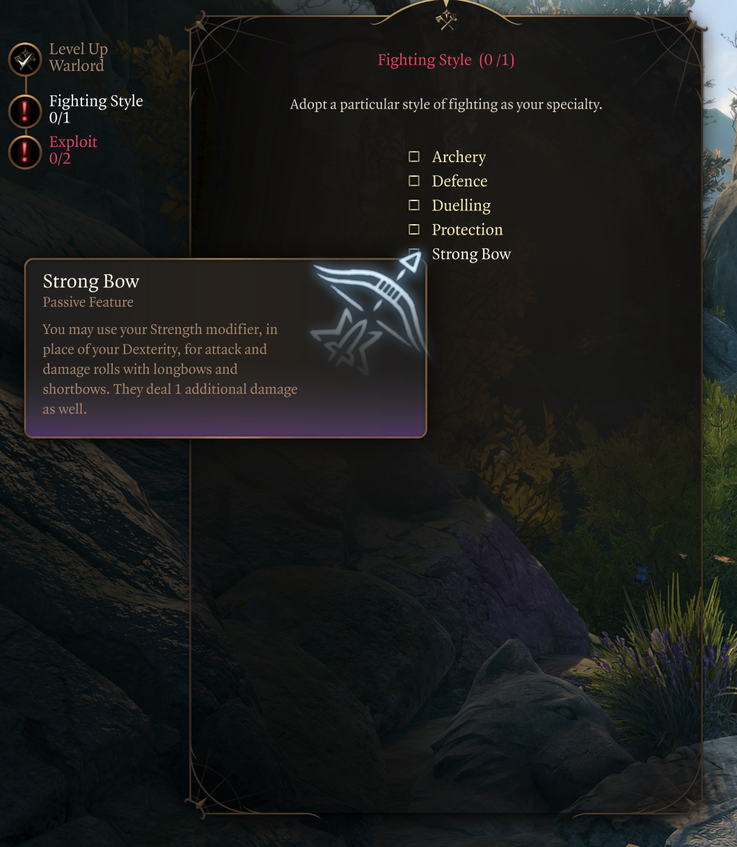 这是 LaserLlama 的 5e 战争领主职业在《博德之门3》中的转换版本,该职业本身基于 D&D 的 4e 战争领主职业。我想要将这个职业加入到 BG3 中,因为它是一个武力支援类职业,在我看来 BG3 缺乏这种类型的职业,并且 LaserLlama 的设计总是非常出色。此外,战争领主职业满足了成为一位能够增强盟友力量的领导者的幻想,这与 BG3 的同伴系统非常契合。