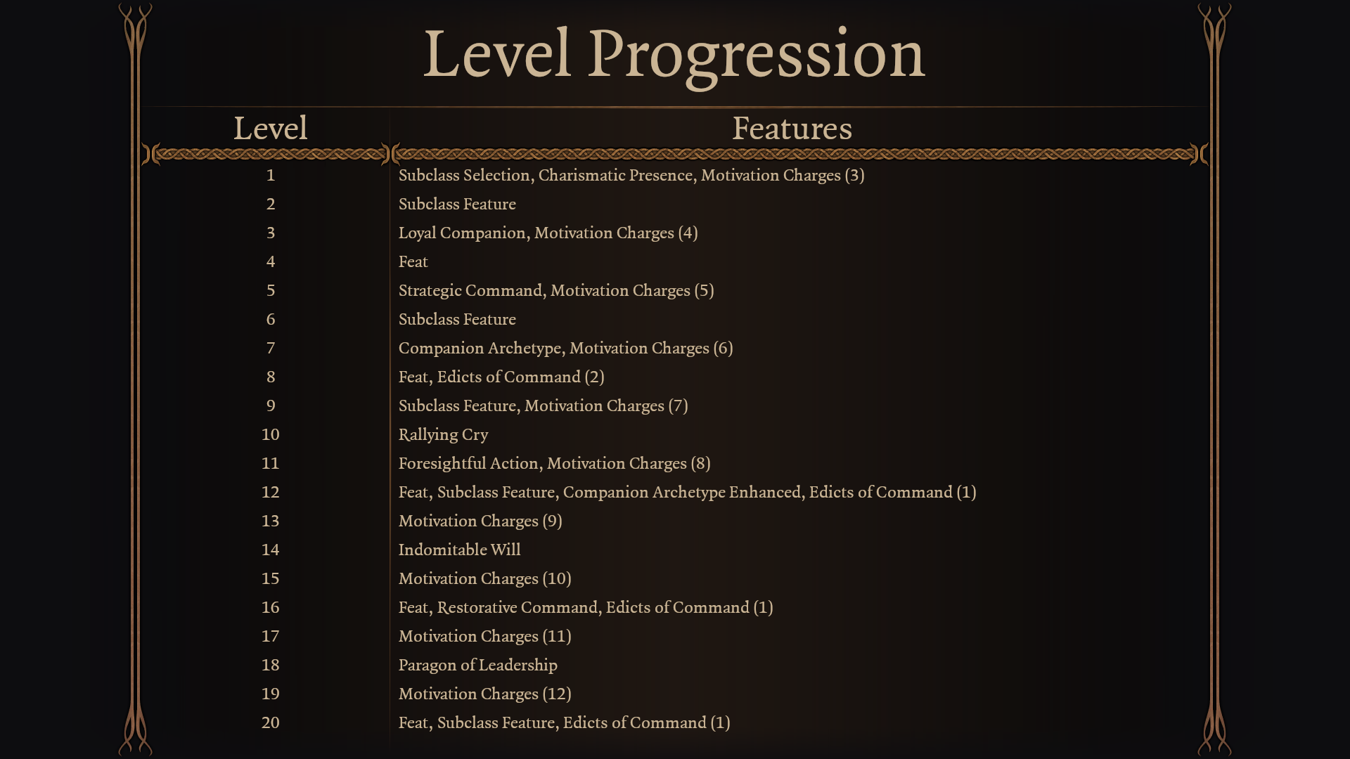 - 3个动机充能:动机充能是一种新的行动资源,用于特定的类和副职业动作,在长时间休息时刷新。