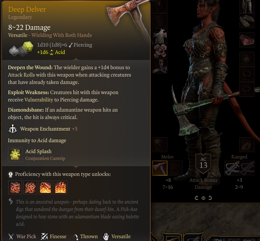 这是一款可作为战斗斧或战锤使用的传奇矿镐,具有更暗的外观。该模组进一步发展了“Deep Delver”概念,并以蓝龙为灵感来源。适用于投掷和双持武器。