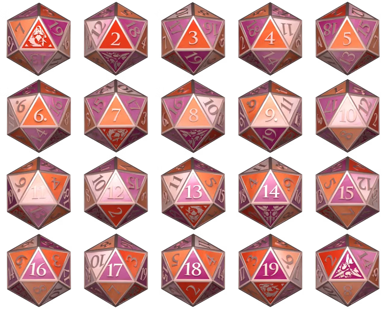 这是我的 Nexus 骰子模组中的 LGBTQ 主题骰子,还有一些额外的版本!我还更新了无性恋骰子的设计(我认为设计得更好),因为那是我的旗帜,我想包含它。如果有人要求的话,我可能会在未来制作其他更符合新版本的骰子。